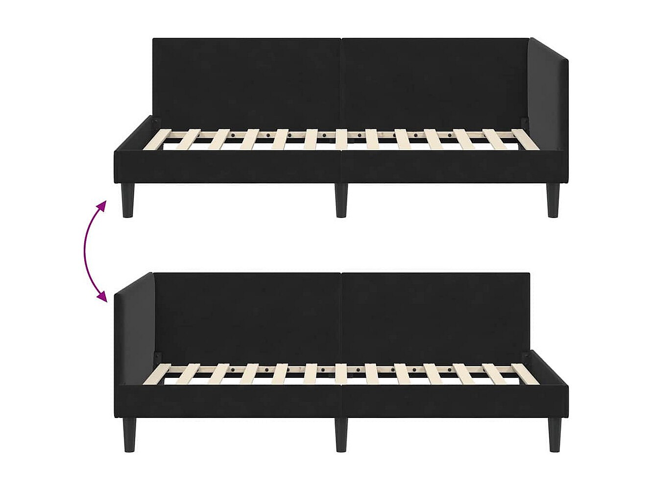Hoekbedframe Zwart 90 x 190 cm Fluweel en Engineered hout