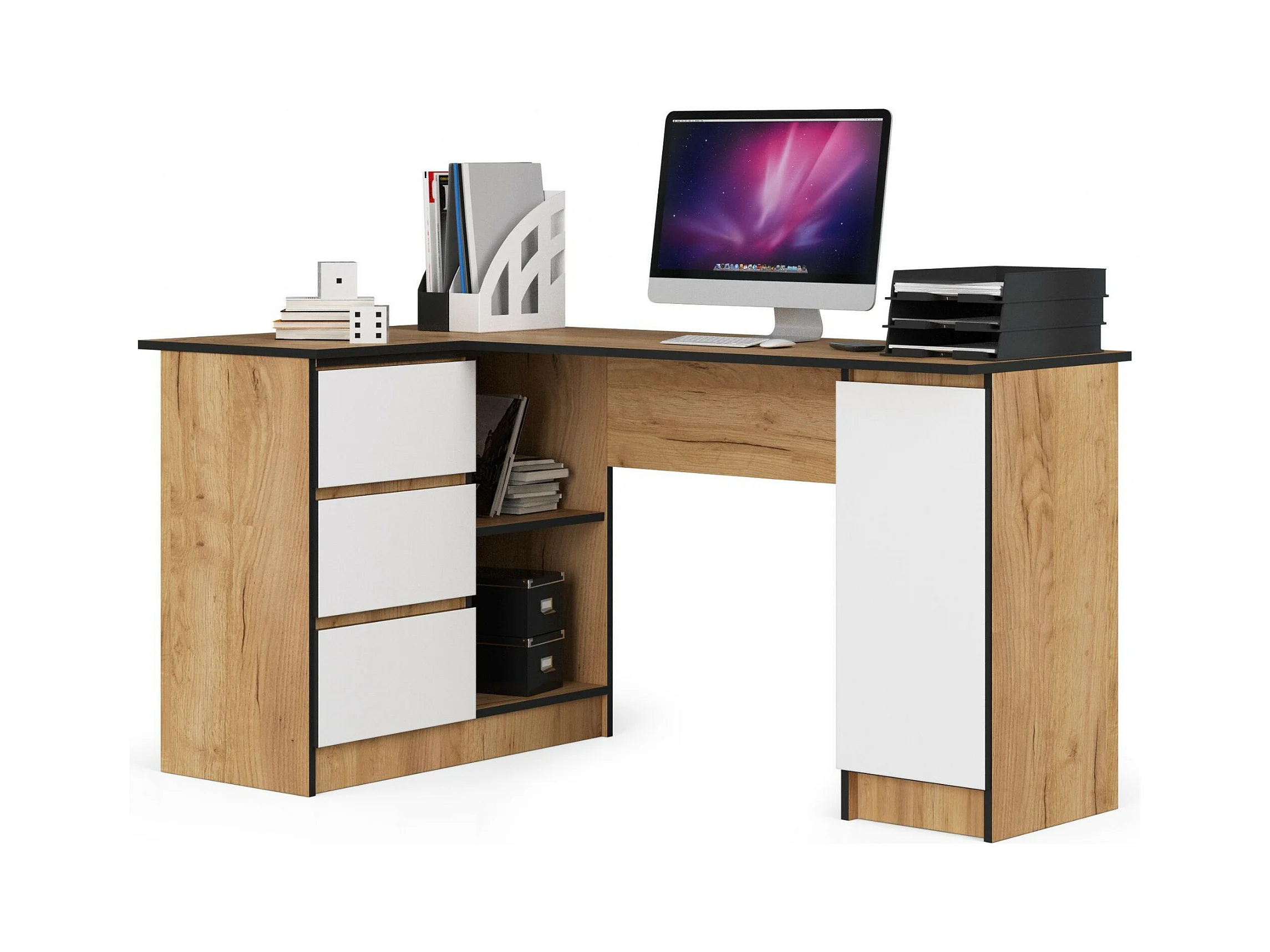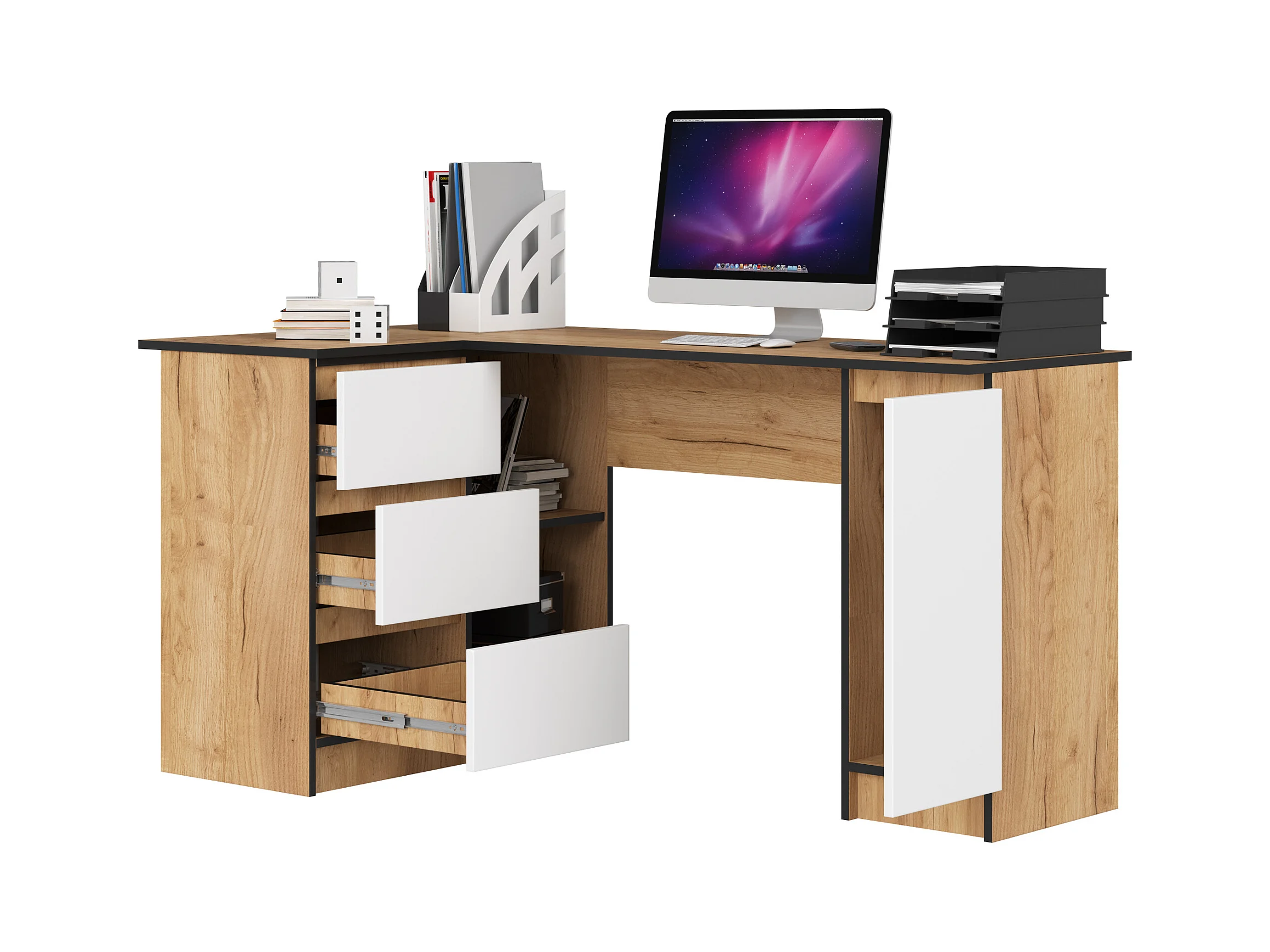 Hoekbureau Links B20 / Computerbureau / Computer Tafel / Bureautafel Links / Craft Eik - Wit / 155 x 77 x 85 cm