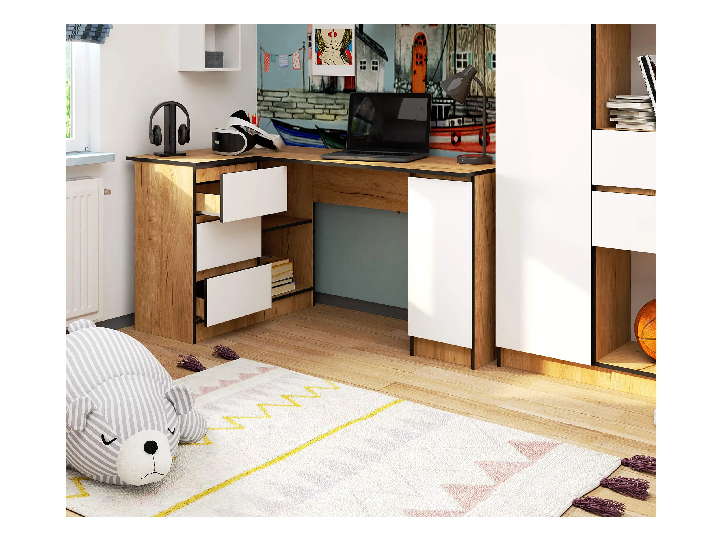 Hoekbureau met lade 115x85cm Luka Zwart | Eiken poten | Linkerkant