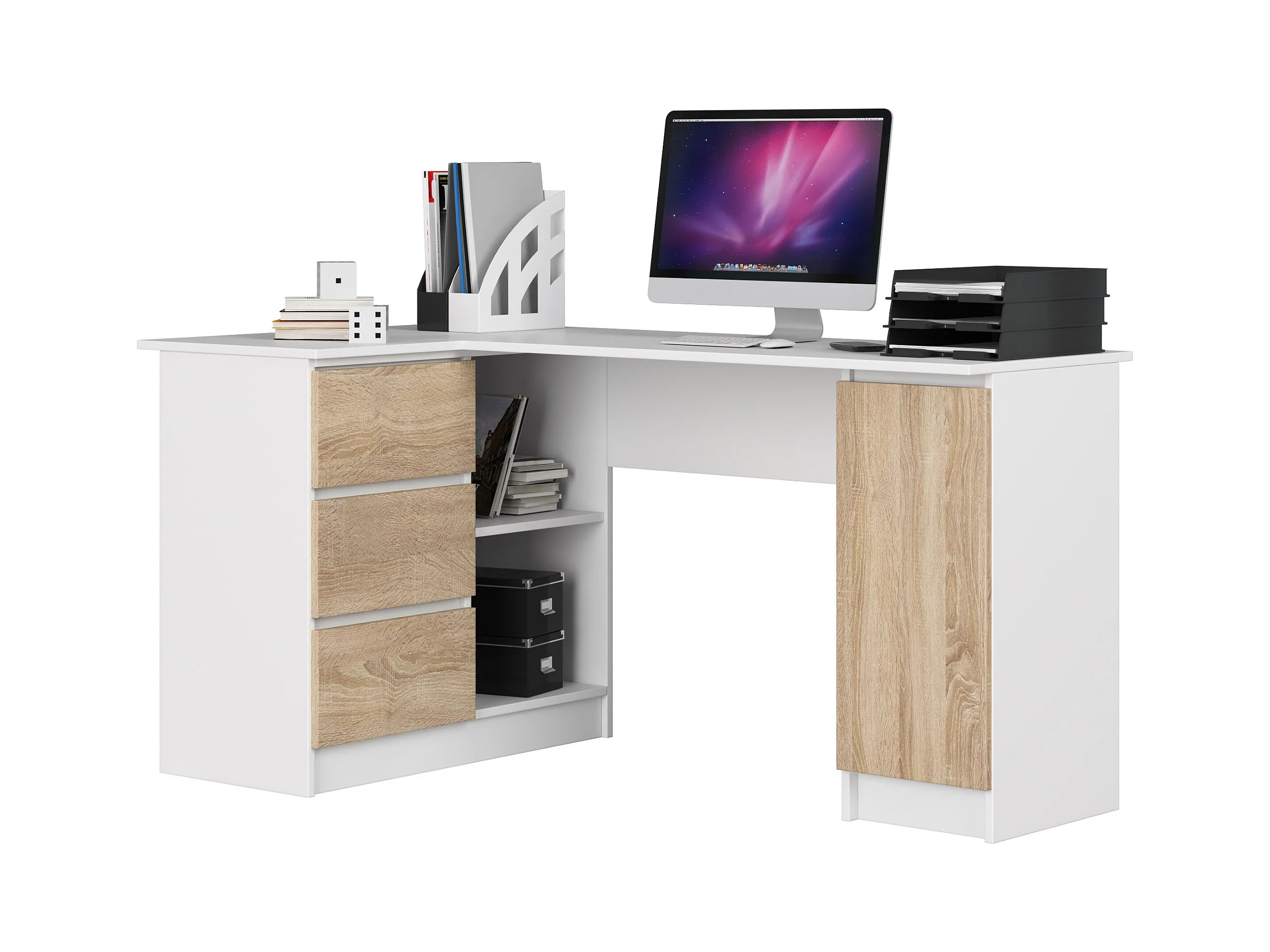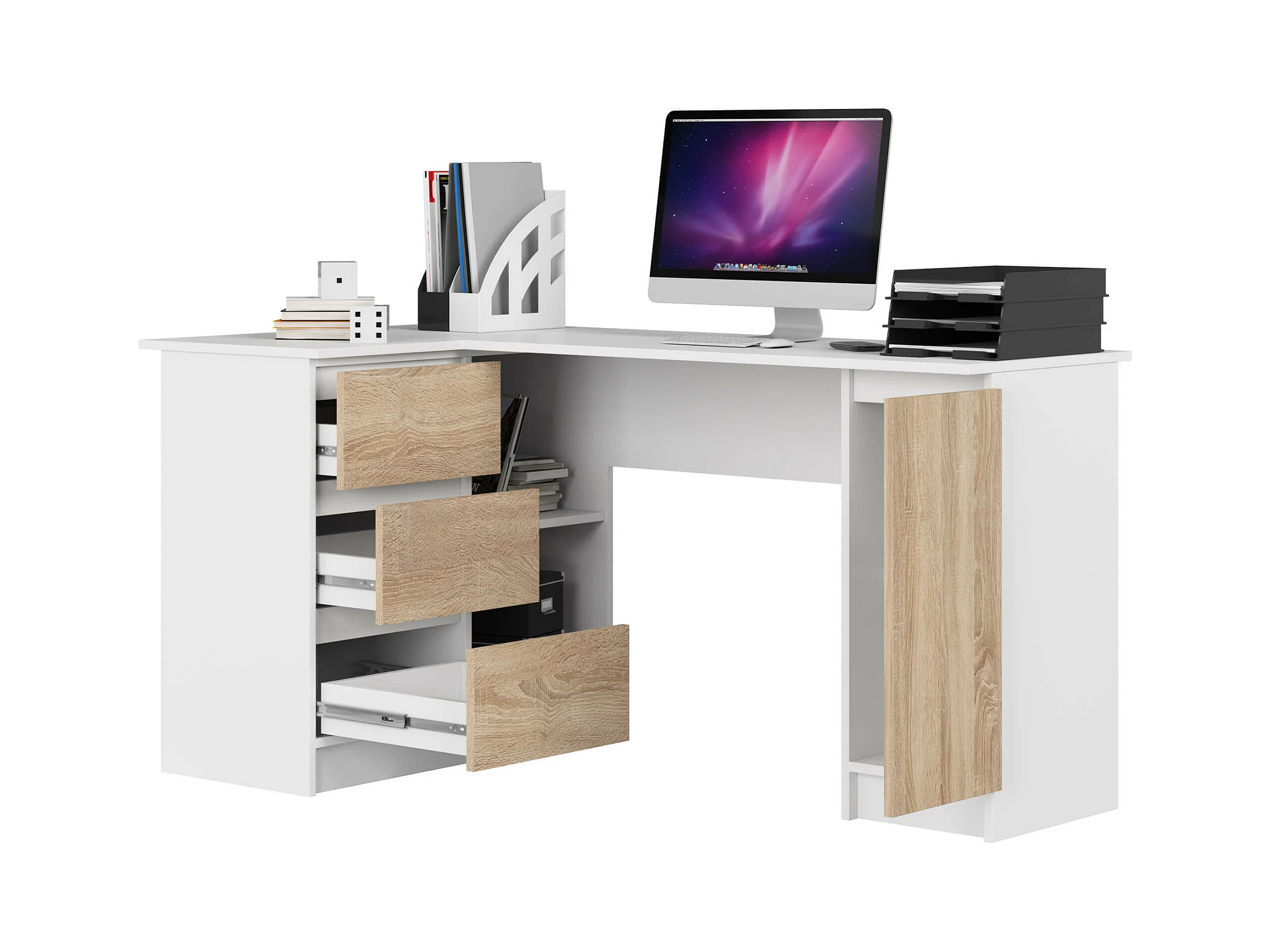 Hoekbureau Links B20 / Computerbureau / Computer Tafel / Bureautafel Links/ Wit – Sonoma Eik / 155 x 77 x 85 cm