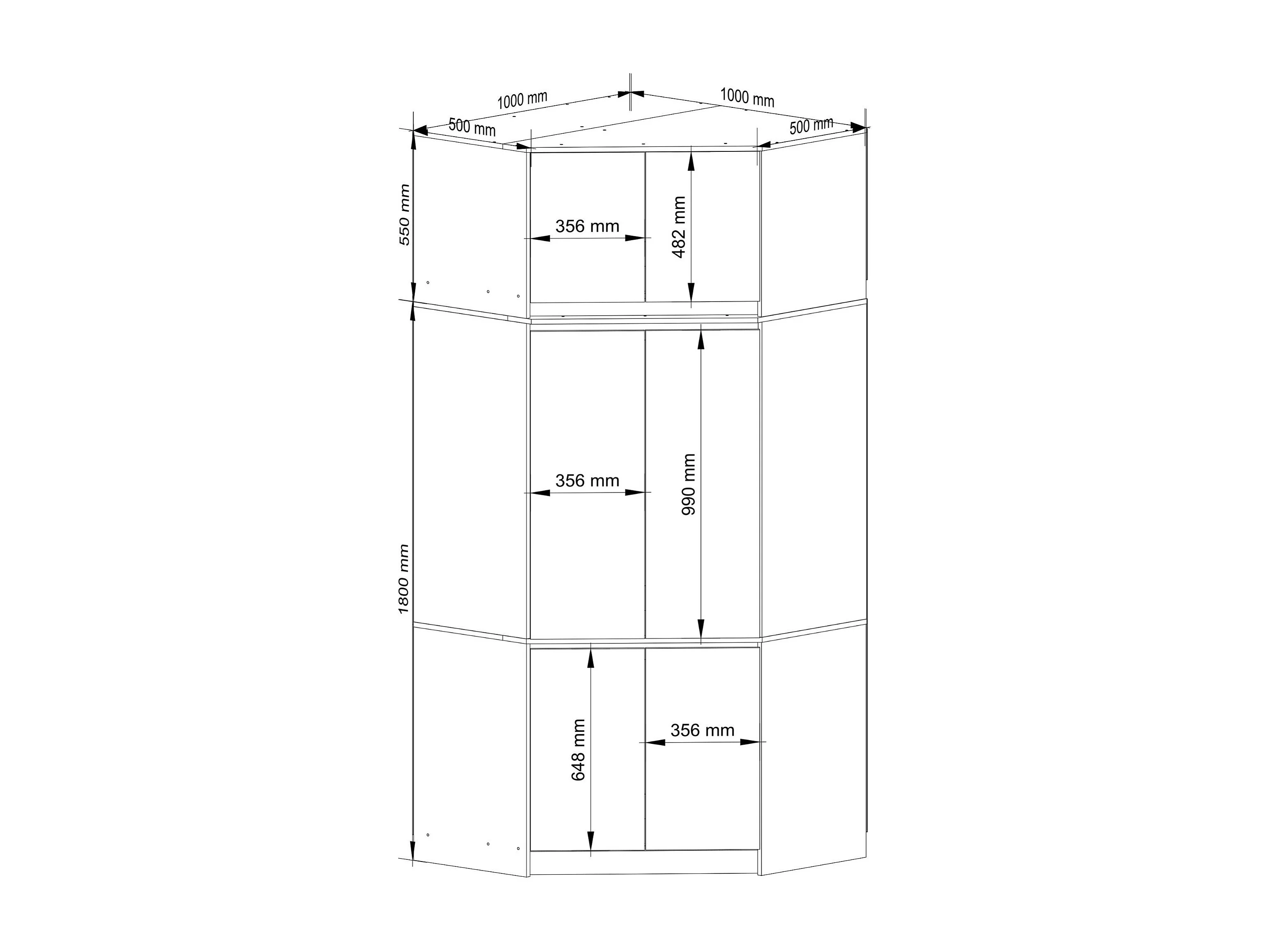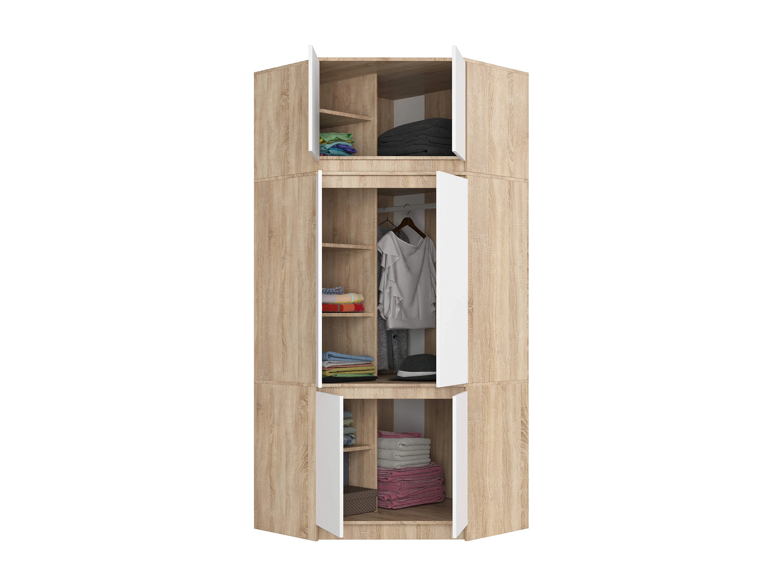 Hoekkledingkast S100 met Opzetstuk / AKORD Furniture Factory / Sonoma Eik - Wit / 100 x 235 x 50 cm
