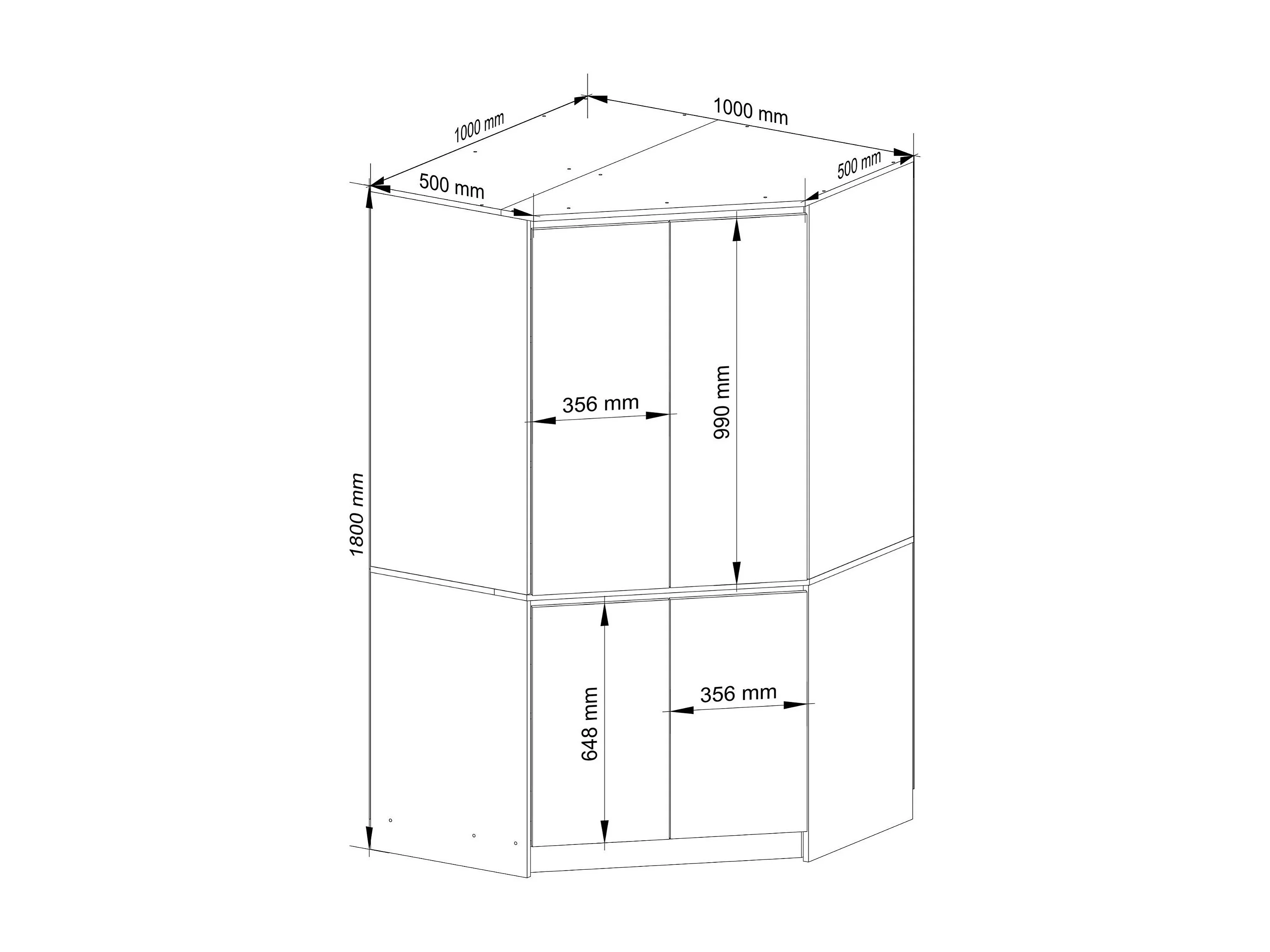 Hoekkast S100 / Kleidingkast met 4 Deuren / AKORD Furniture Factory / Sonoma Eik - Wit / 100 x 180 x 50 cm