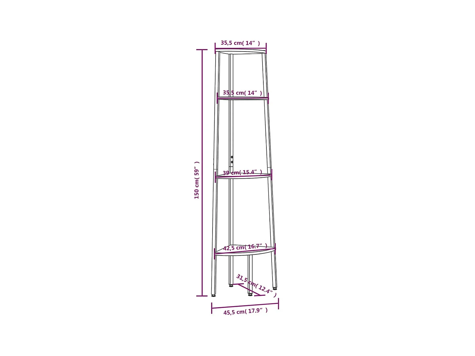 Hoekkastje met 4 schappen 45,5x31,5x150 cm donkerbruin en zwart