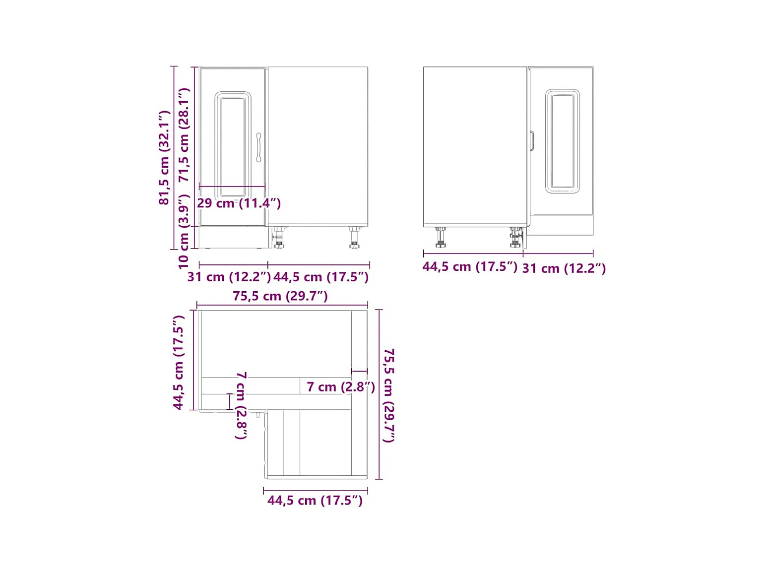 Keuken hoekonderkast "Porto" bewerkt hout zwart
