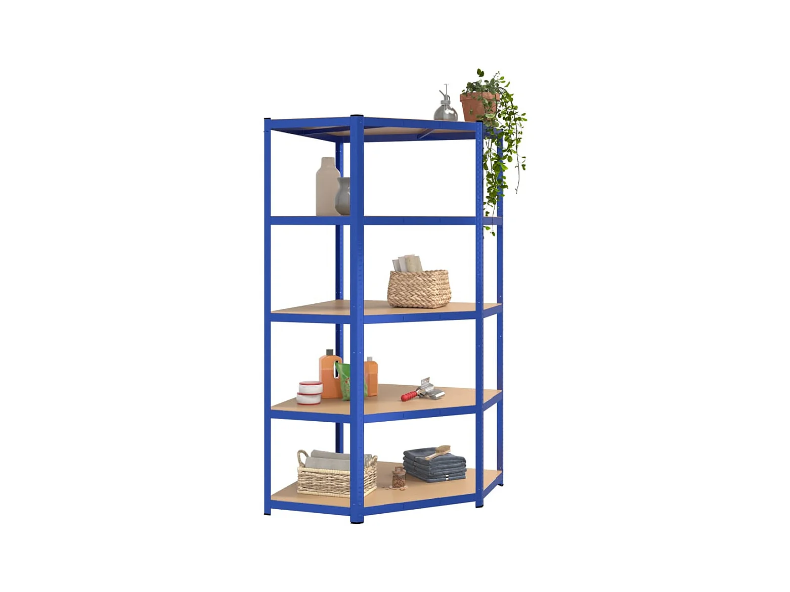 Hoekrek 4-laags staal en bewerkt hout blauw NL128037