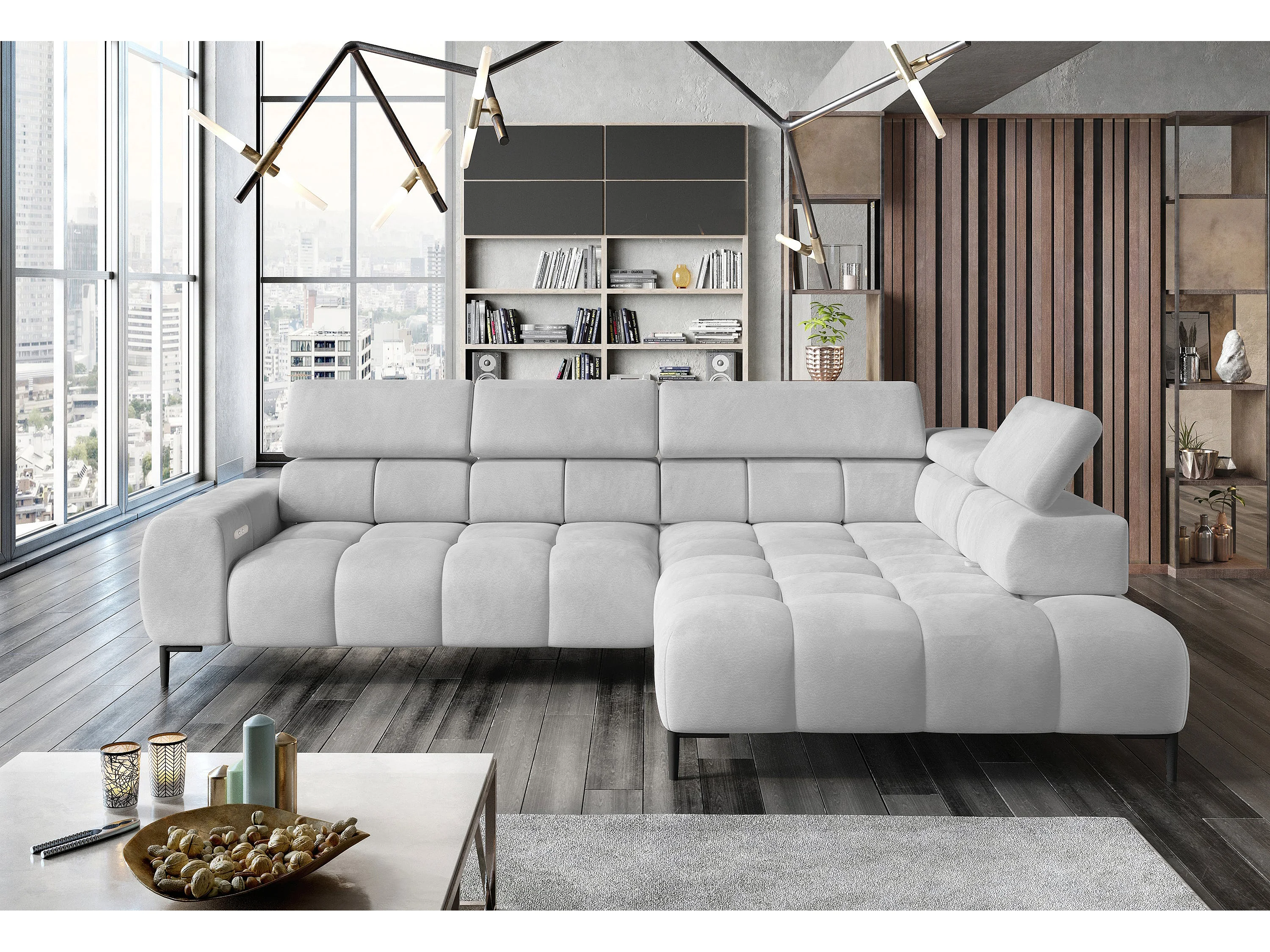 Hoeksalon PLAZA-L Stof SOLAR Hoekbank Inclusief Comfortabele Zachte Rugleuning Longchair Rechts Industrieel Stijl L-Vorm Rechts 300x99x216cm WIT