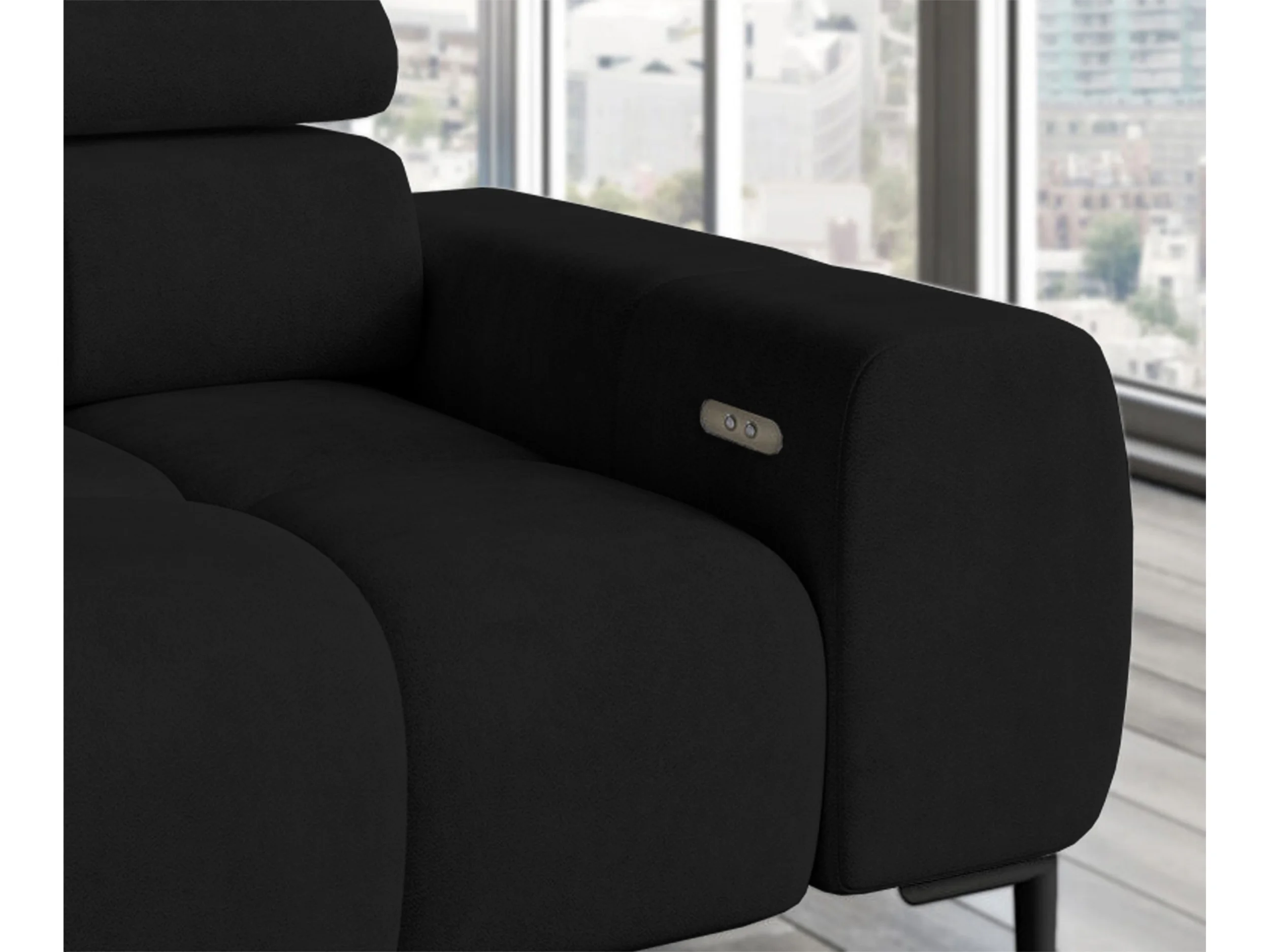 Hoeksalon PLAZA-L Stof SOLAR Hoekbank Inclusief Comfortabele Zachte Rugleuning Longchair Rechts Industrieel Stijl L-Vorm Rechts 300x99x216cm ZWART