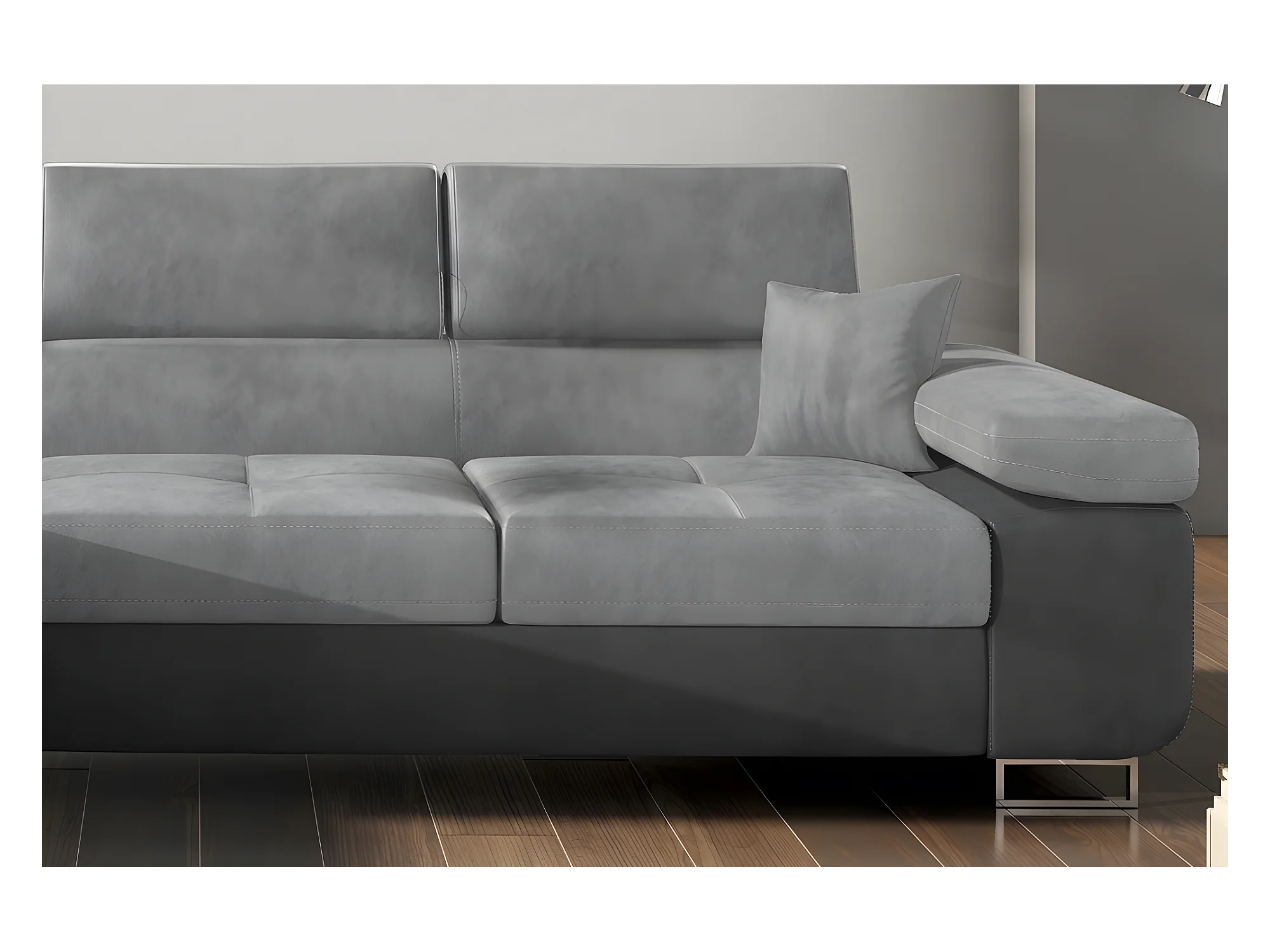 Hoekslaapbank omvormbaar in luxe grijze fluwelen stof met opbergkist en verstelbare hoofdsteunen - ARMEL