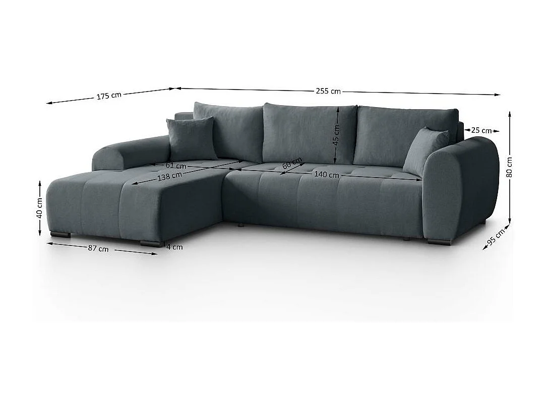 Hoekslaapbank Diana met opbergruimte donkergrijs rechts