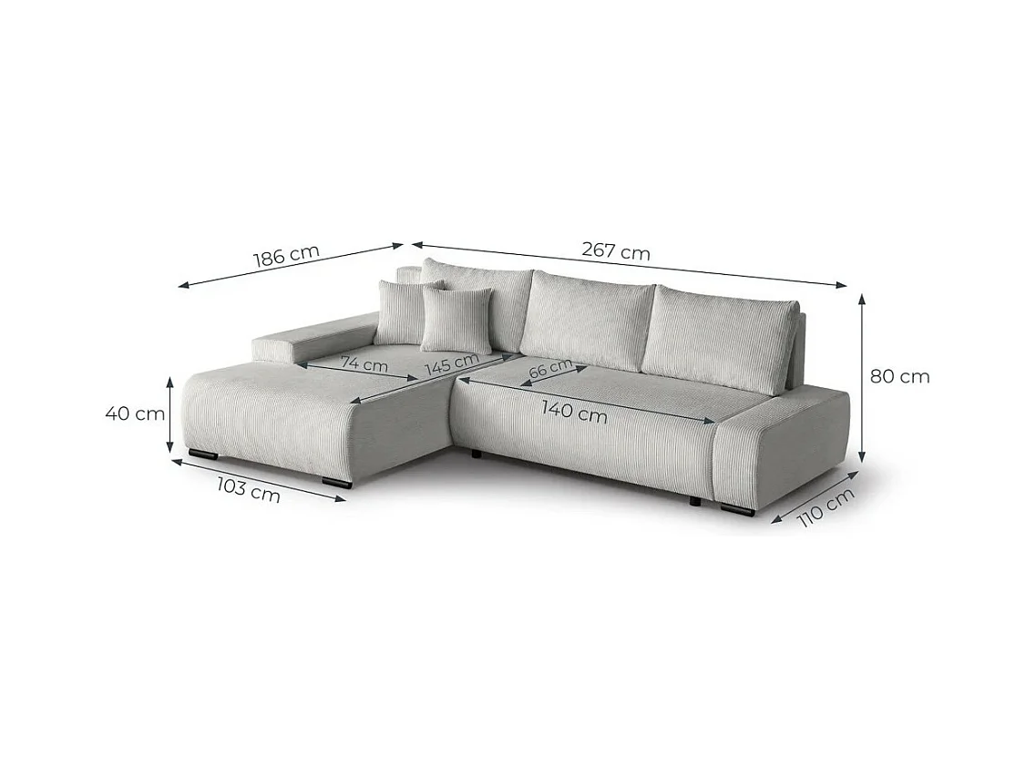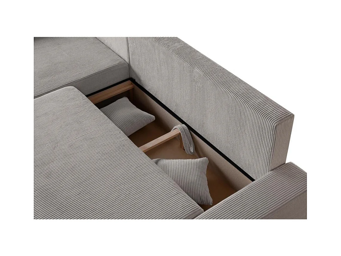 Dabazo slaapbank, Hoekslaapbank met omkeerbaar schiereiland, Moderne opbergbank met chaiselongue en 3 kussens, 230x153h85 cm, Bruin