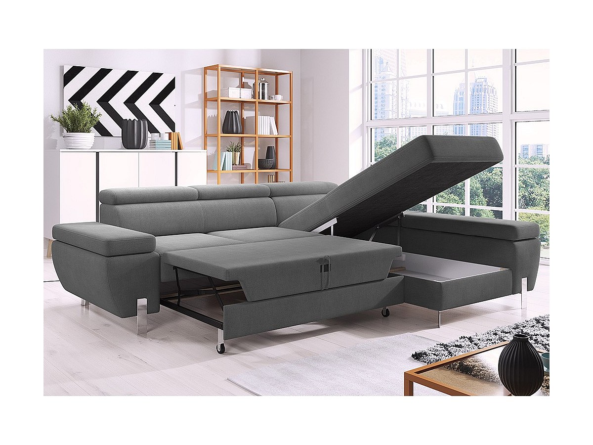 Hoekslaapbank GOBANO van stof - Antraciet - Hoek rechts
