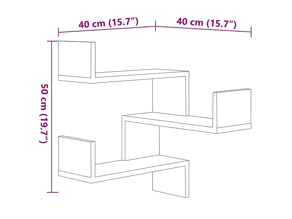 Hoekwandschapen 2 st 40x40x50 cm bewerkt hout sonoma eikenkleur