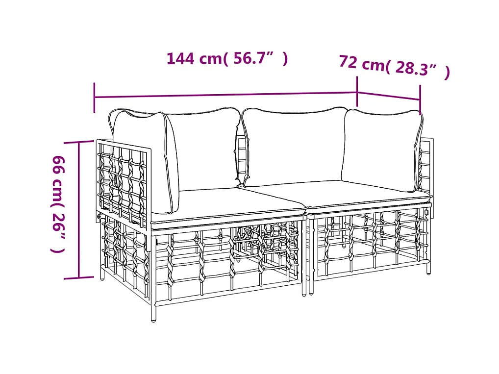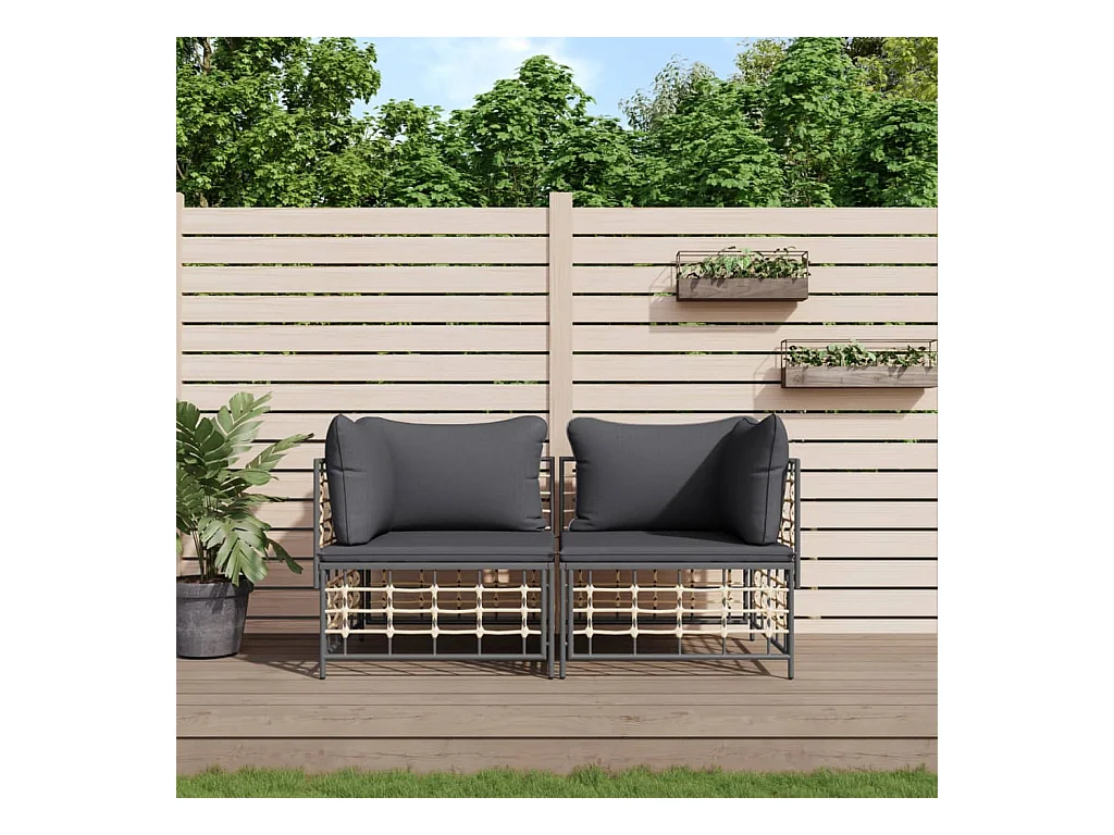 Tuinbanken zonder armleuningen met kussens 2 stuks grijs
