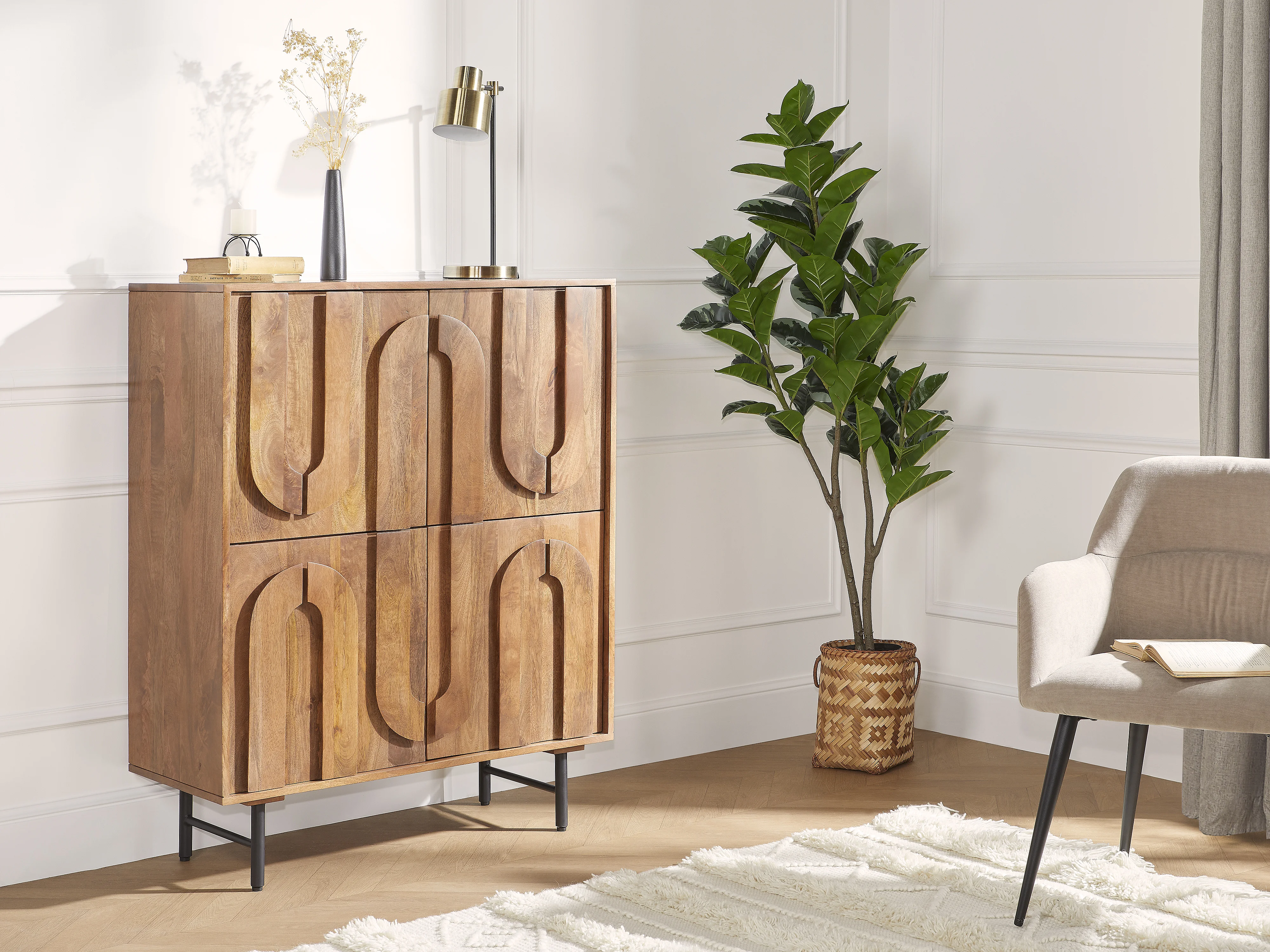 Hoge buffetkast met 4 deurtjes in mangohout en zwart metaal - Naturel - MIZORAM van Maison Céphy