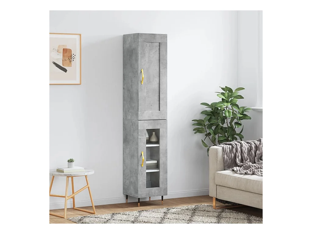 Hoge kast 34,5x34x180 cm bewerkt hout betongrijs