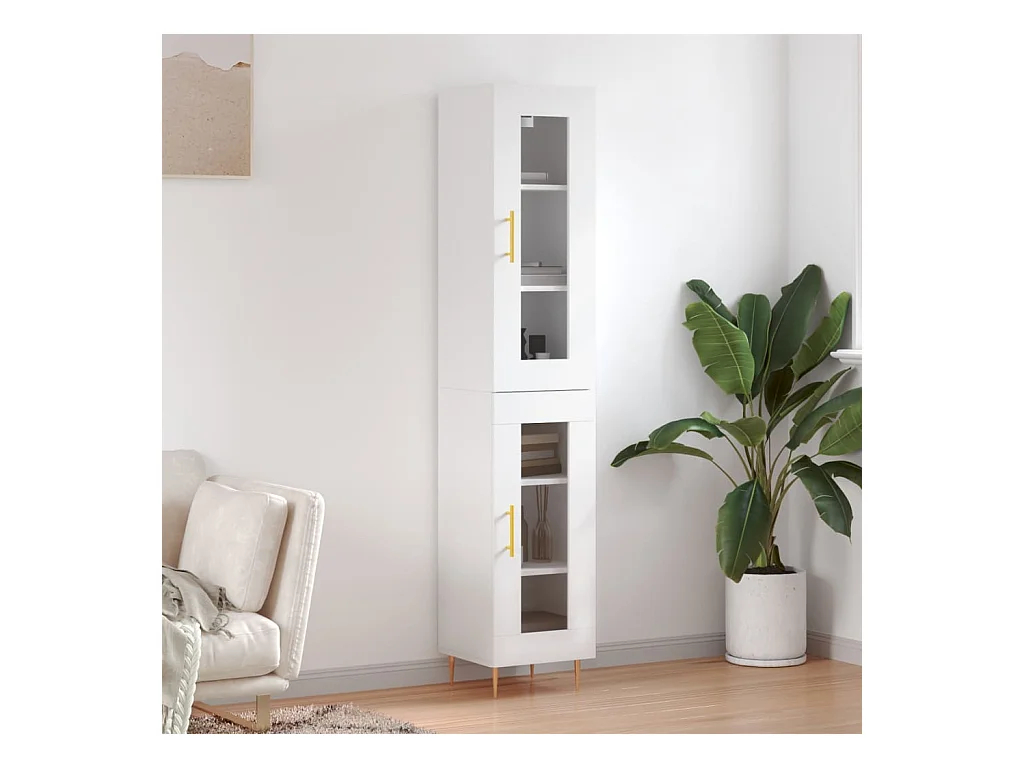 Hoge kast 34,5x34x180 cm bewerkt hout wit NL376738