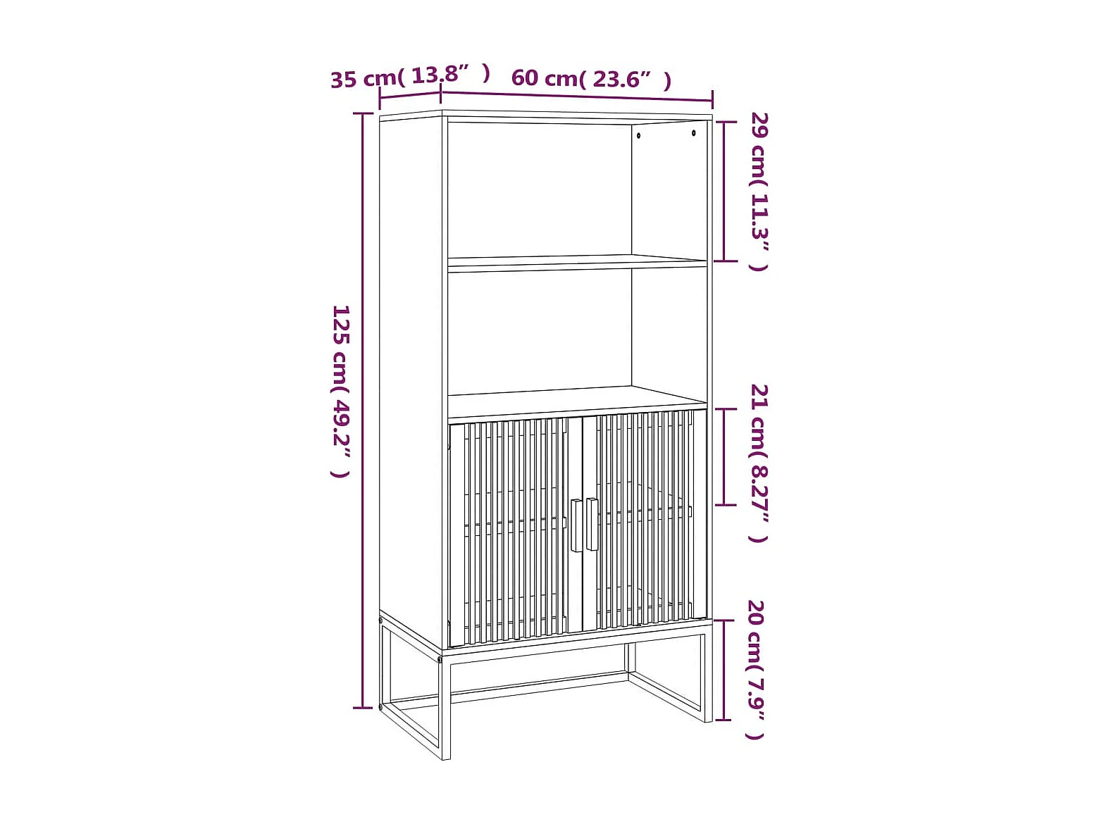 Hoge kast 60x35x125 cm bewerkt hout wit