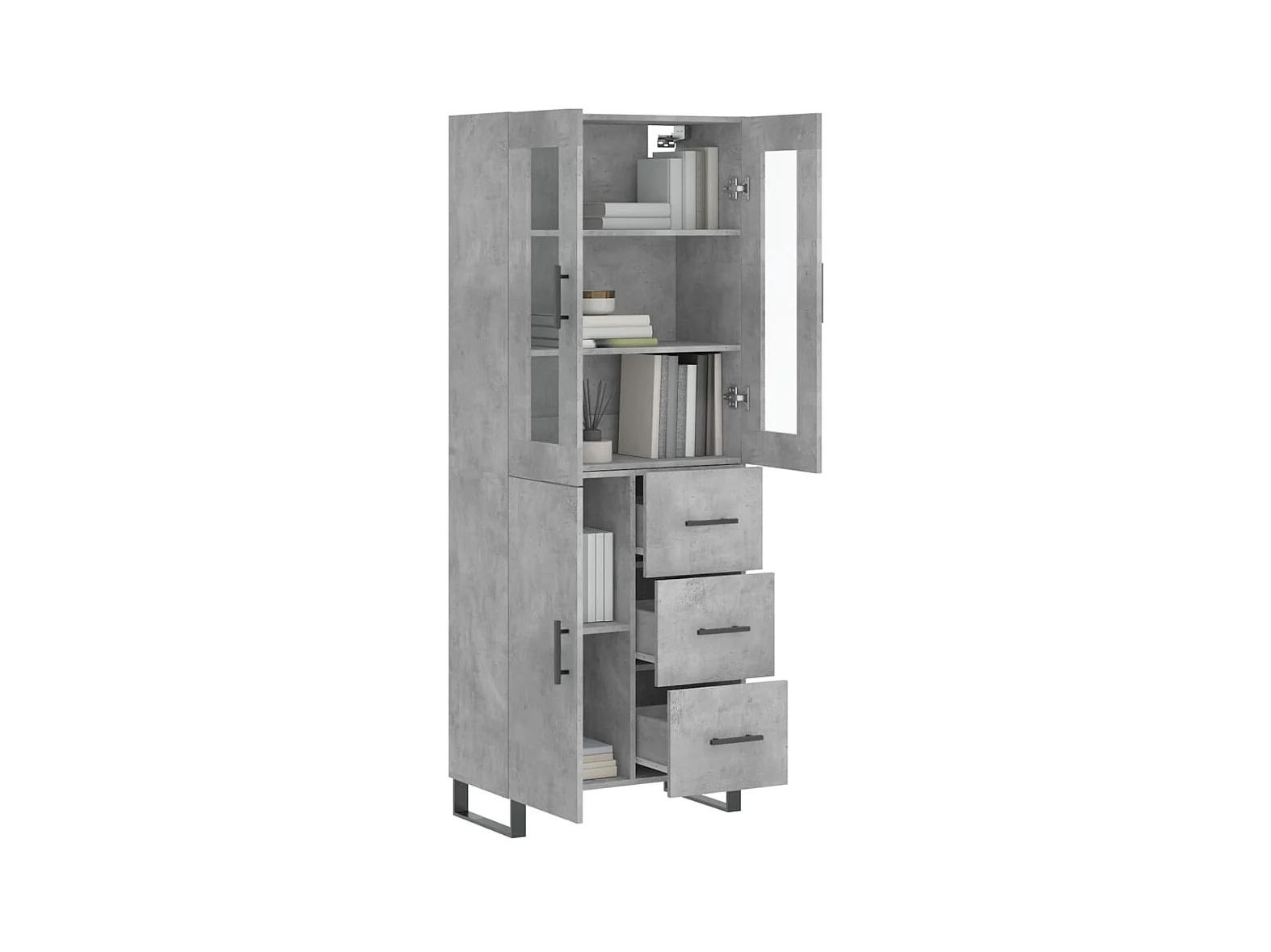 Hoge kast 69,5x34x180 cm bewerkt hout betongrijs NL221039