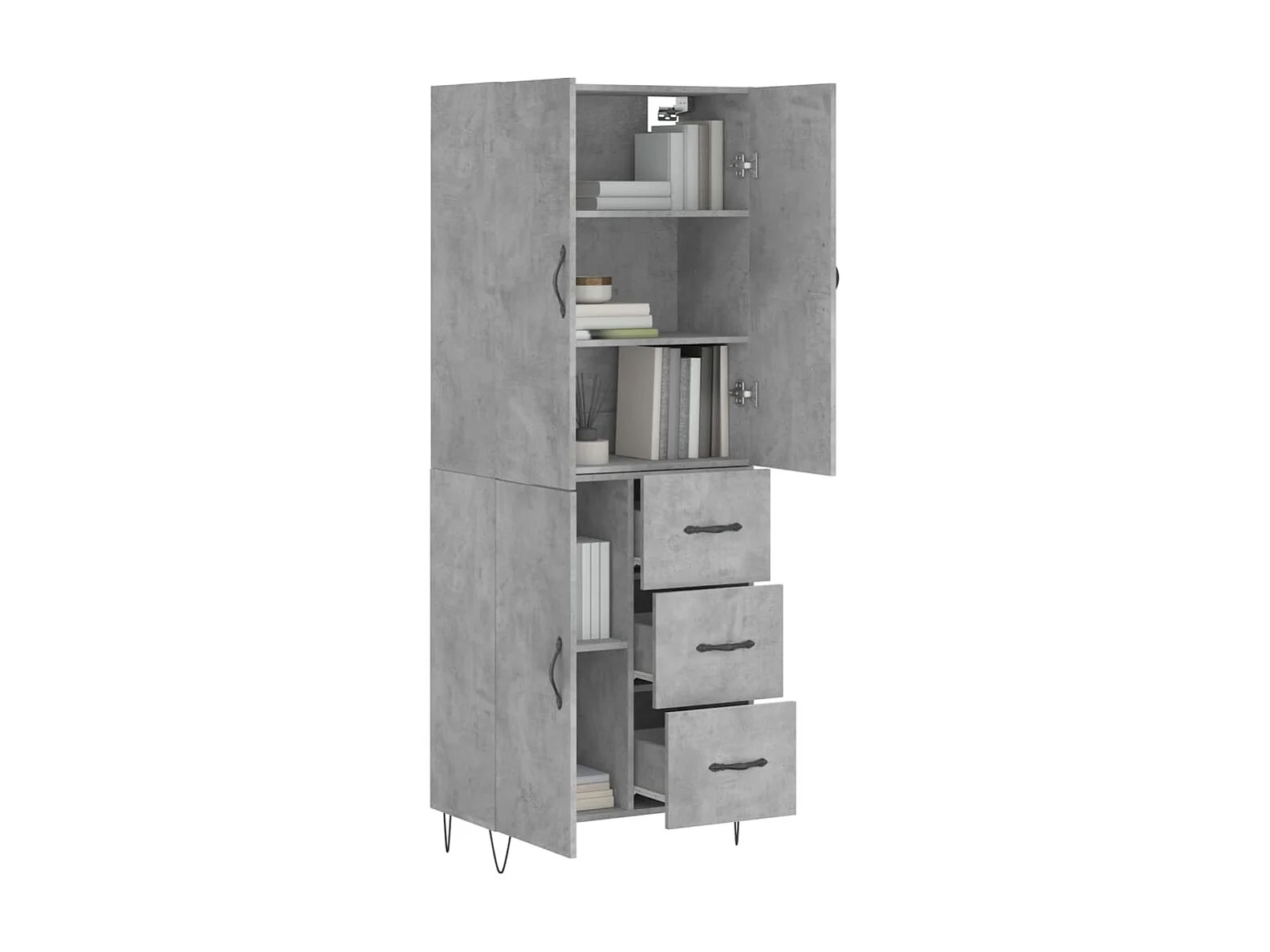 Hoge kast 69,5x34x180 cm bewerkt hout betongrijs NL640509