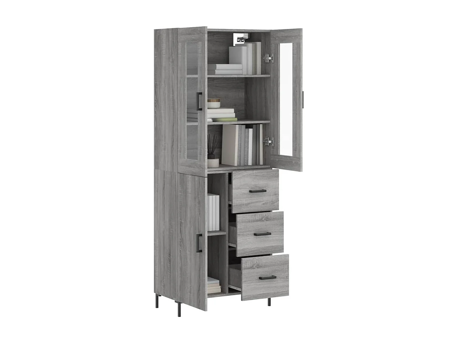 Hoge kast 69,5x34x180 cm bewerkt hout grijs sonoma eikenkleurig