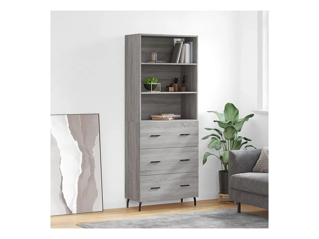 Hoge kast 69,5x34x180 cm bewerkt hout grijs sonoma eikenkleurig NL958646