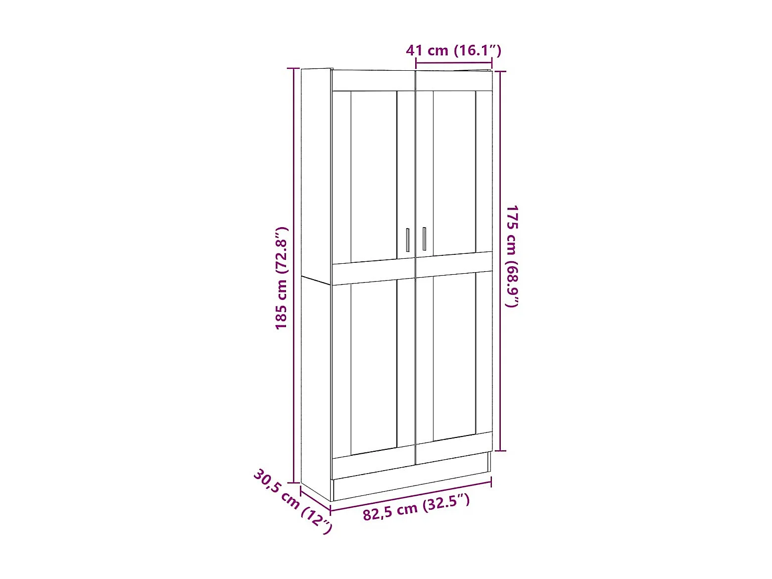 Hoge kast 82,5x30,5x185 cm bewerkt hout artisanaal eikenkleur