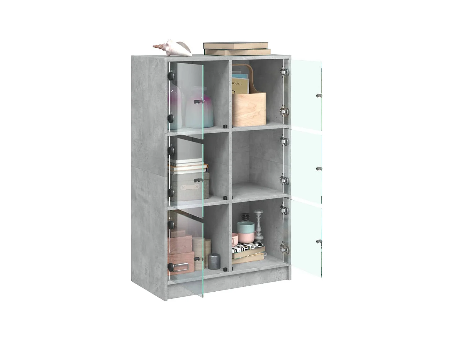 Hoge kast met glazen deuren 35x37x109 cm betongrijs
