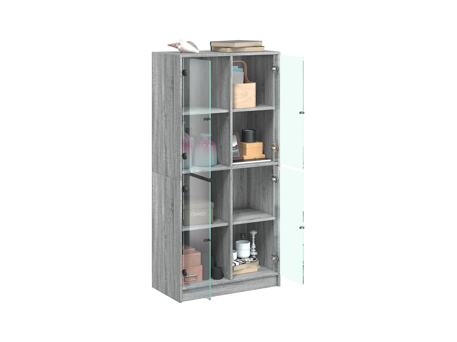 Bijzetkast met glazen deuren 69x37x100 cm grijs sonoma eiken