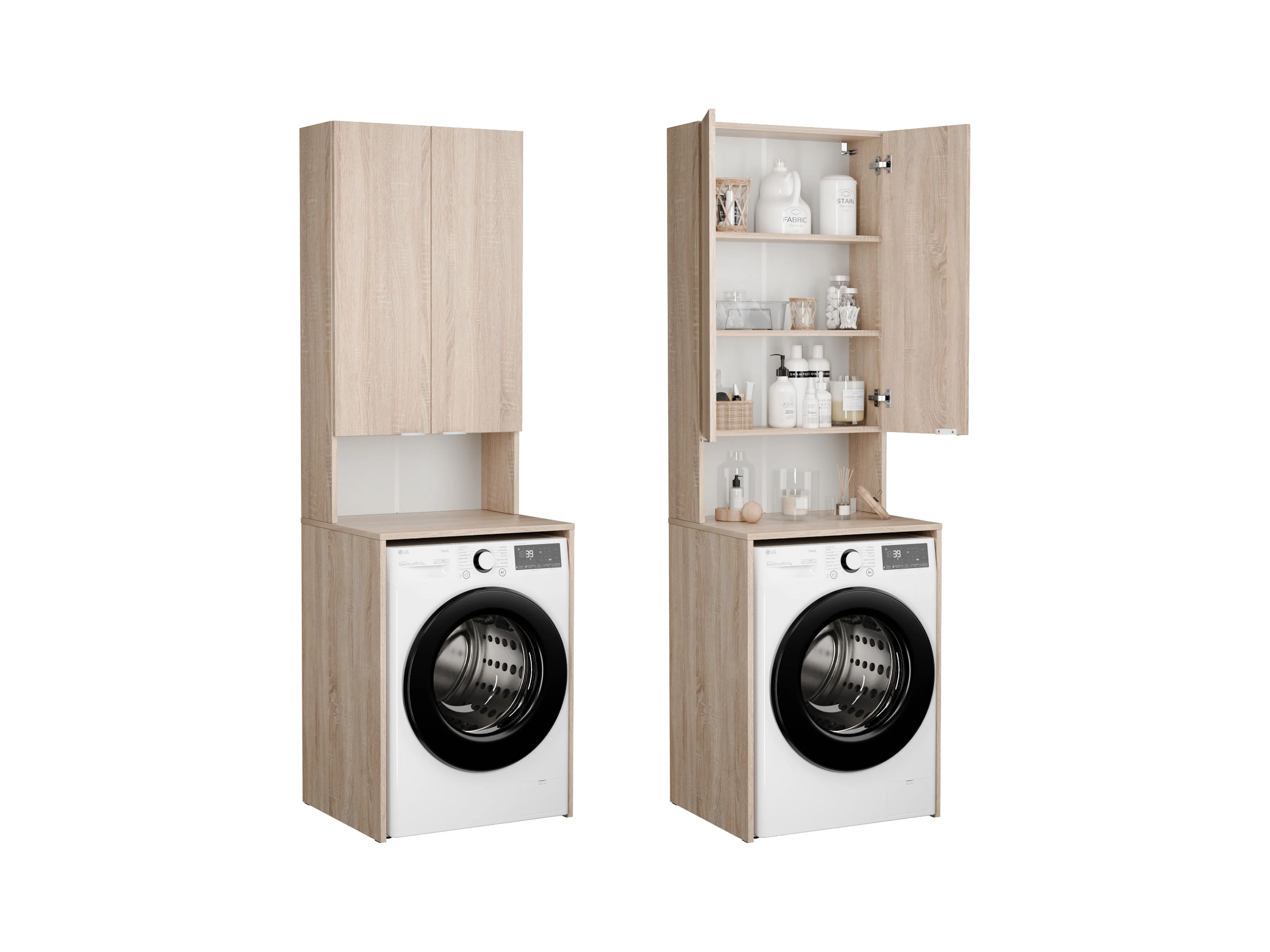 Hoge Kast voor Wasmachine en Droger – 210 x 65 x 56/25 cm – Sonoma Eiken – Diepte: 56 cm