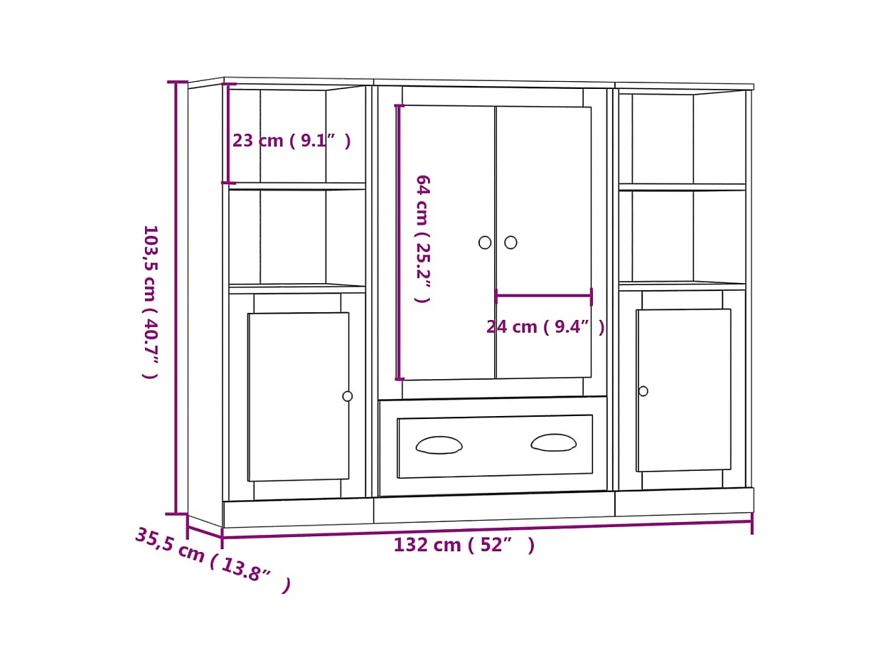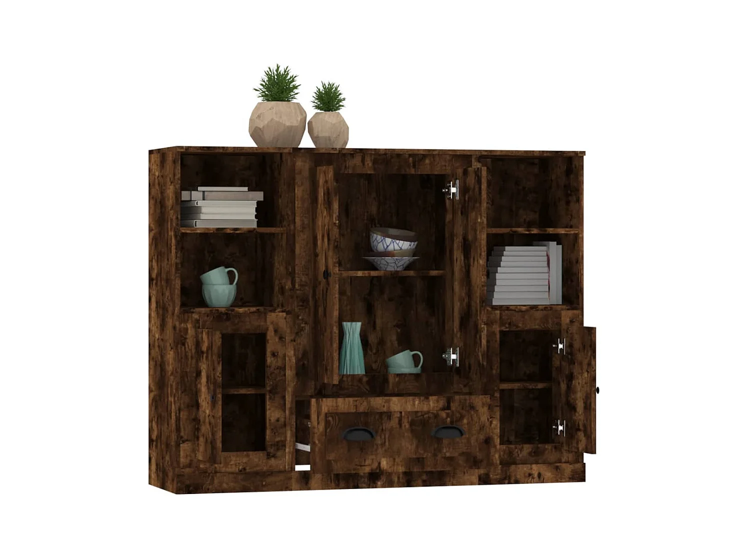 3-delige dressoirs, Sonoma eiken, bewerkt hout
