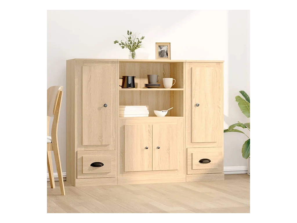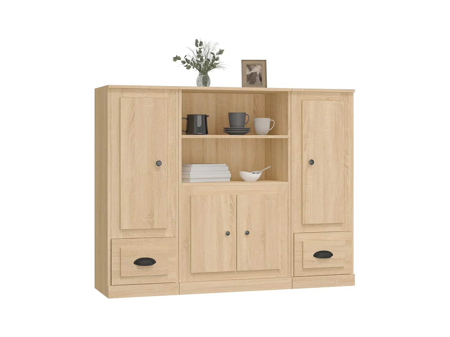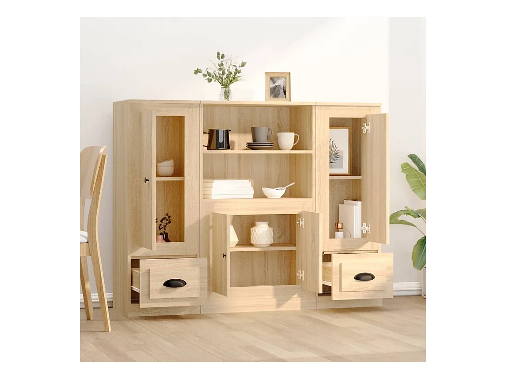 Hoge kasten 3 st bewerkt hout sonoma eikenkleurig BE907566