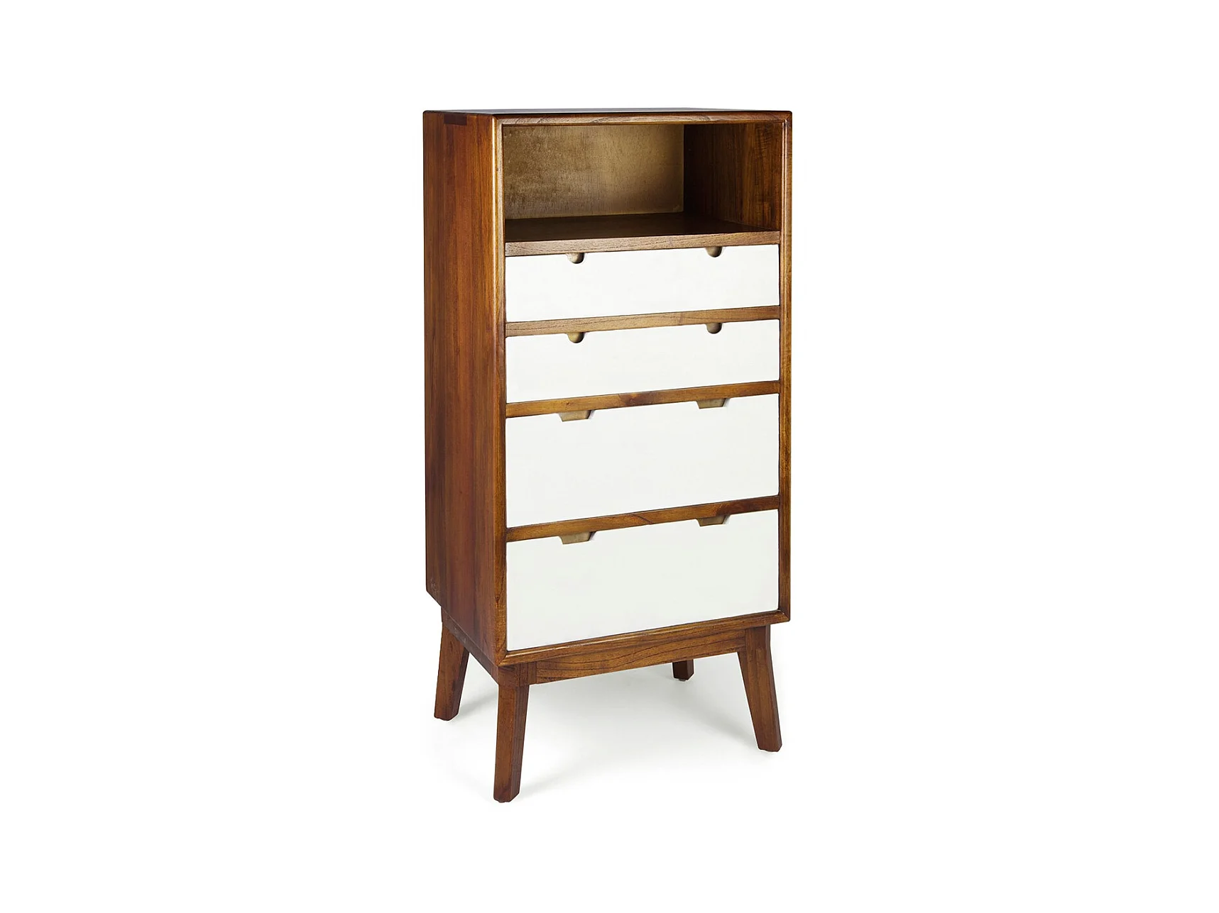 Hoge ladekast met 4 laden en 1 massief houten nis van mindi Kretos 60 cm
