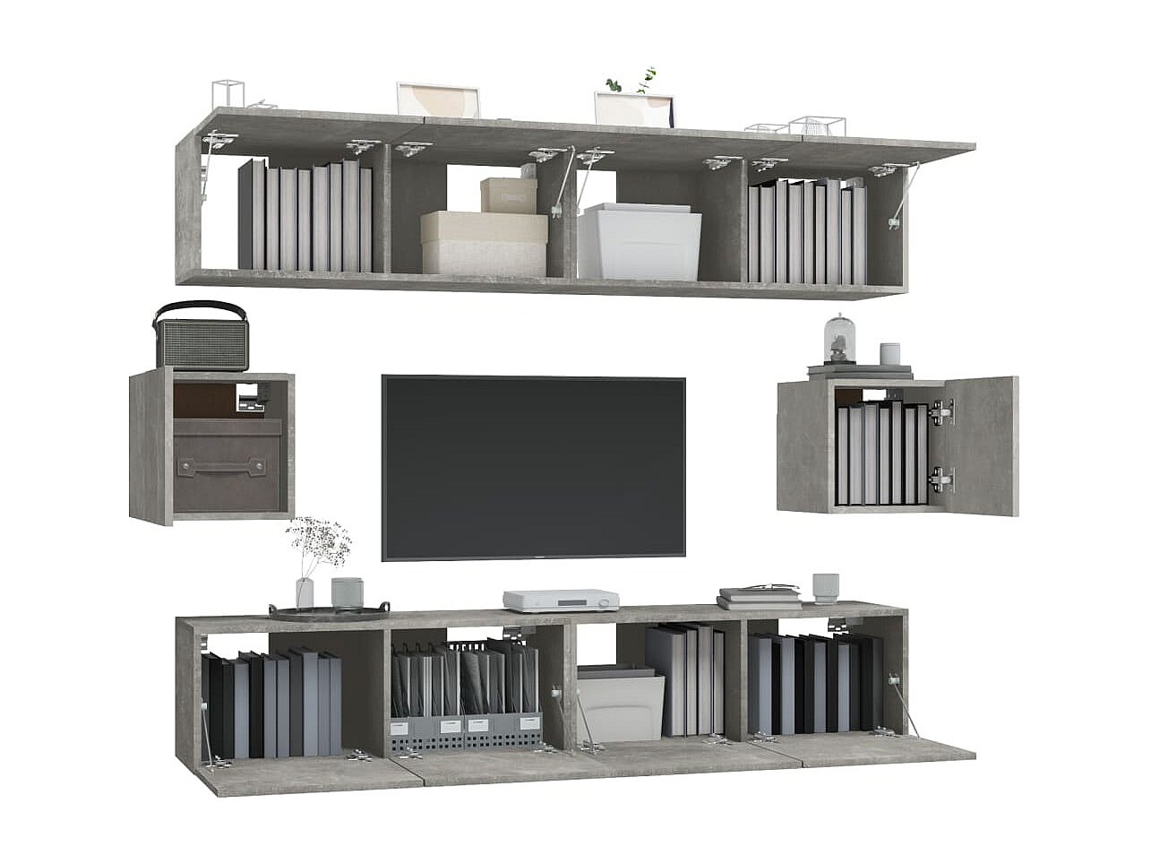 Hollola 6-delige Tv-meubelset bewerkt hout betongrijs