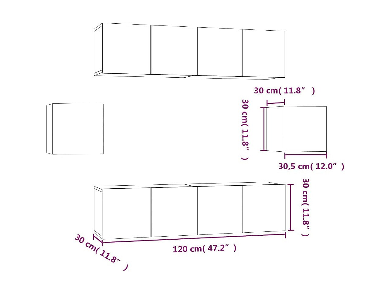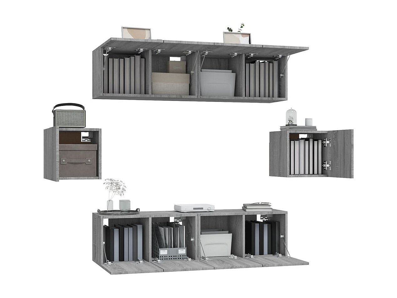 Hollola 6-delige Tv-meubelset bewerkt hout grijs sonoma eikenkleurig