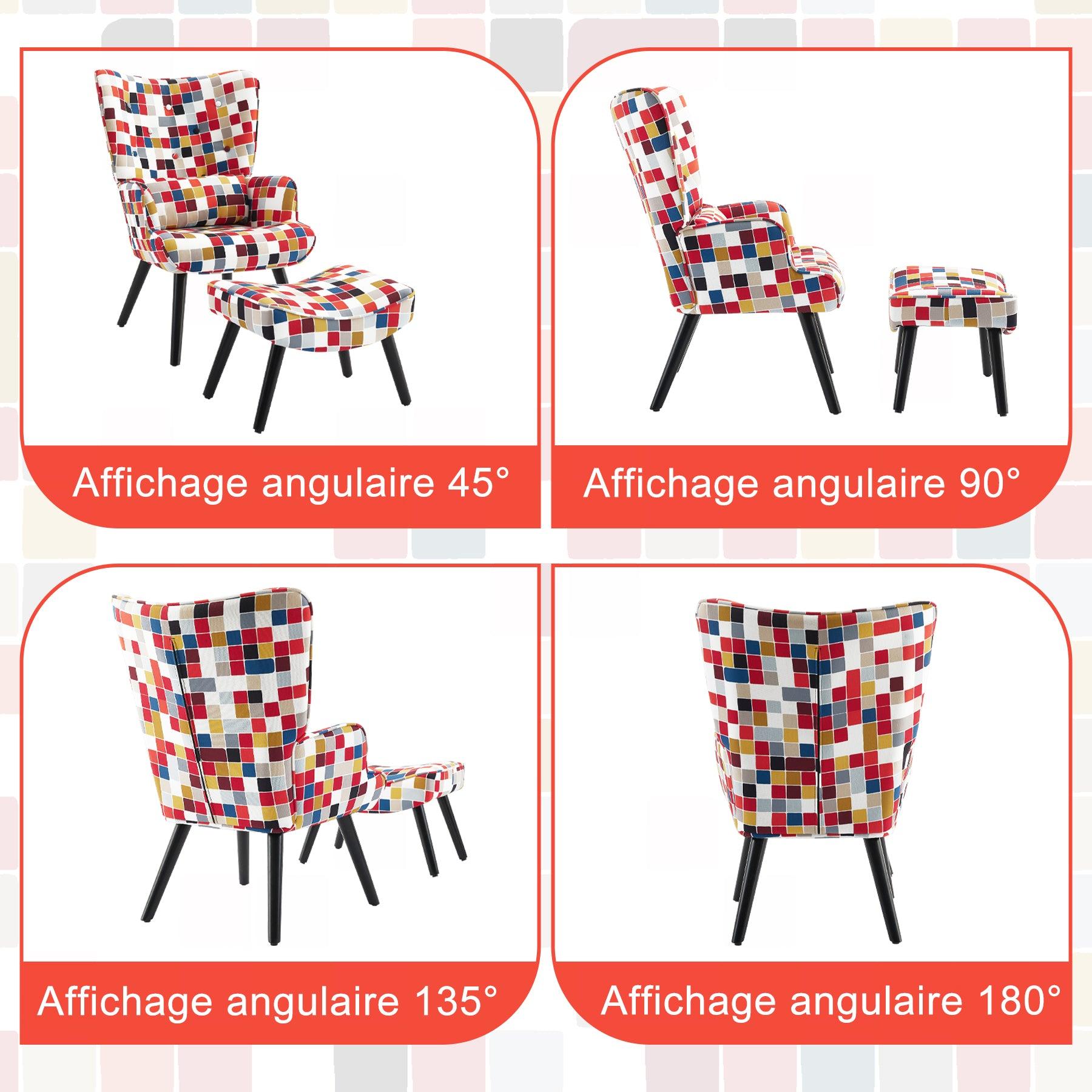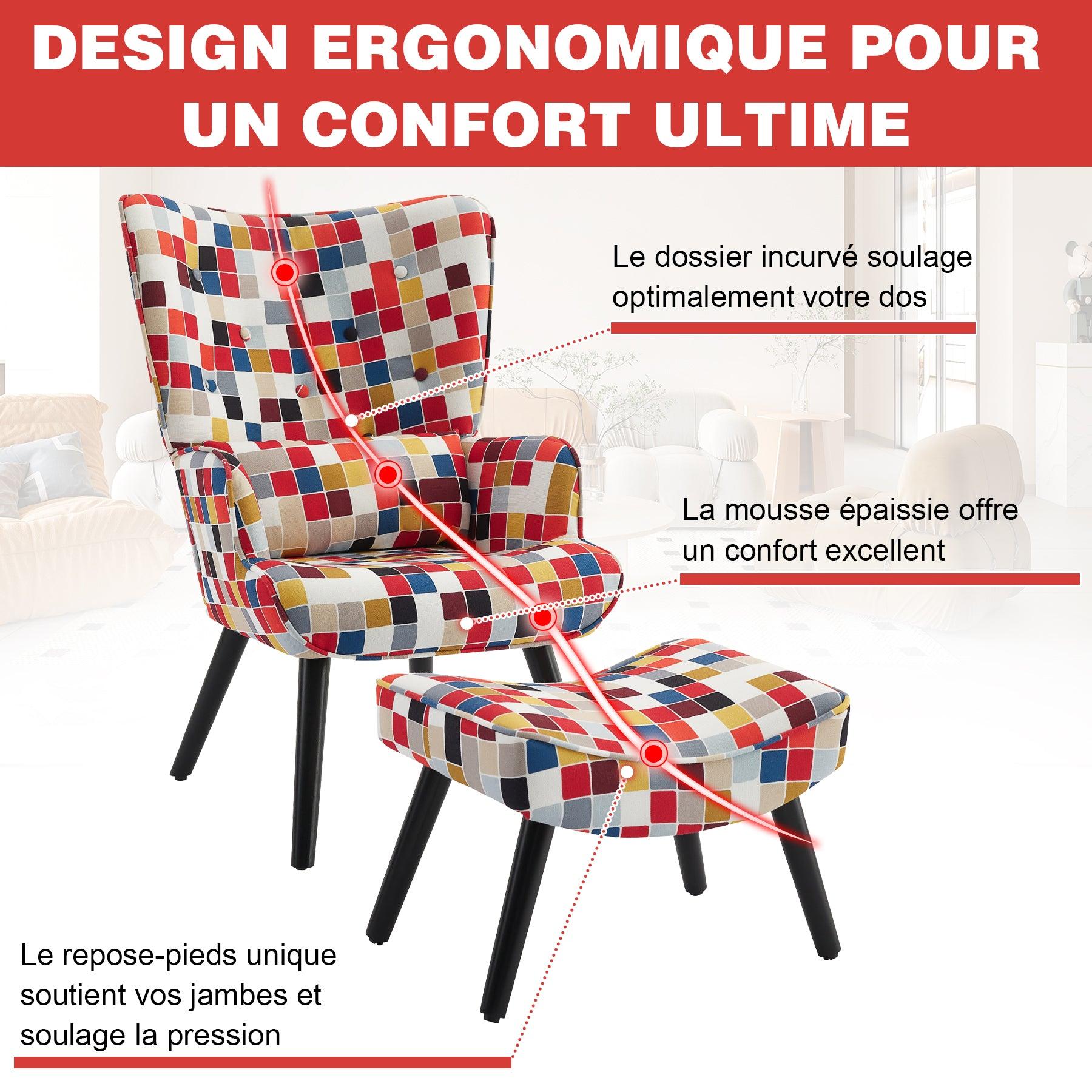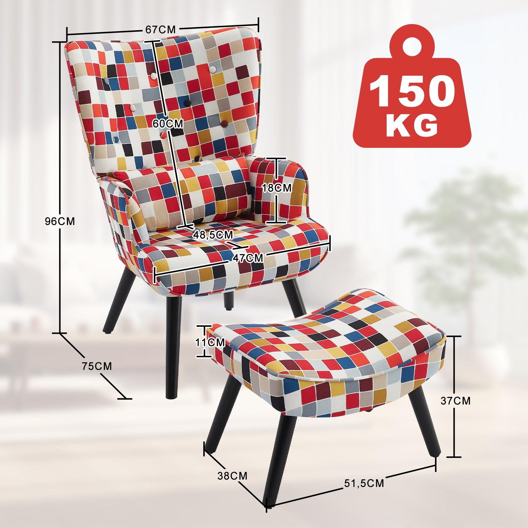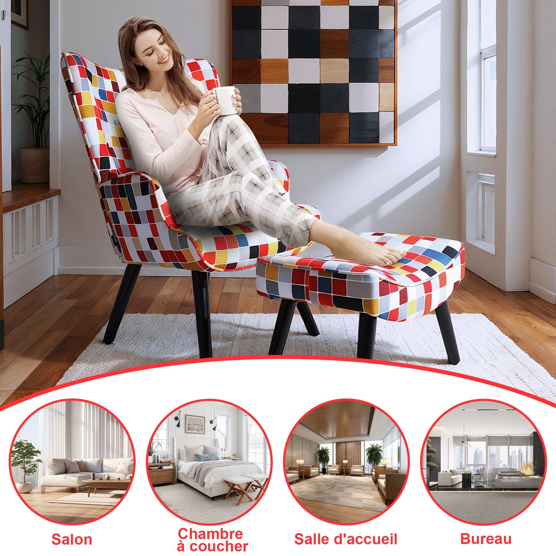 HomeMiYN Fauteuil met kussen en kruk - Rustieke hoekstoel voor de woonkamer