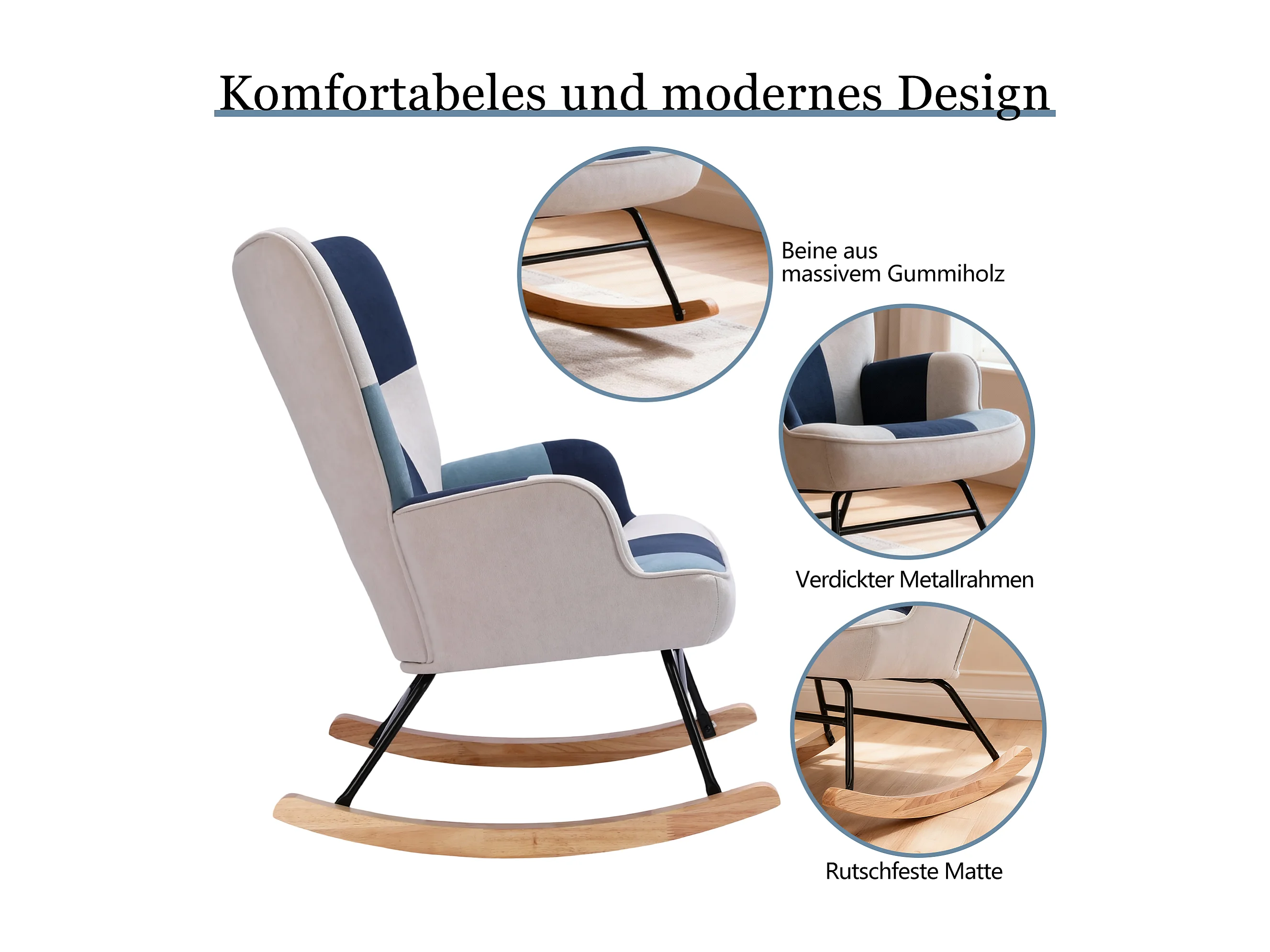 HOMEMIYN Schommelstoel - Fluweelzacht Comfort en Natuurhouten Structuur