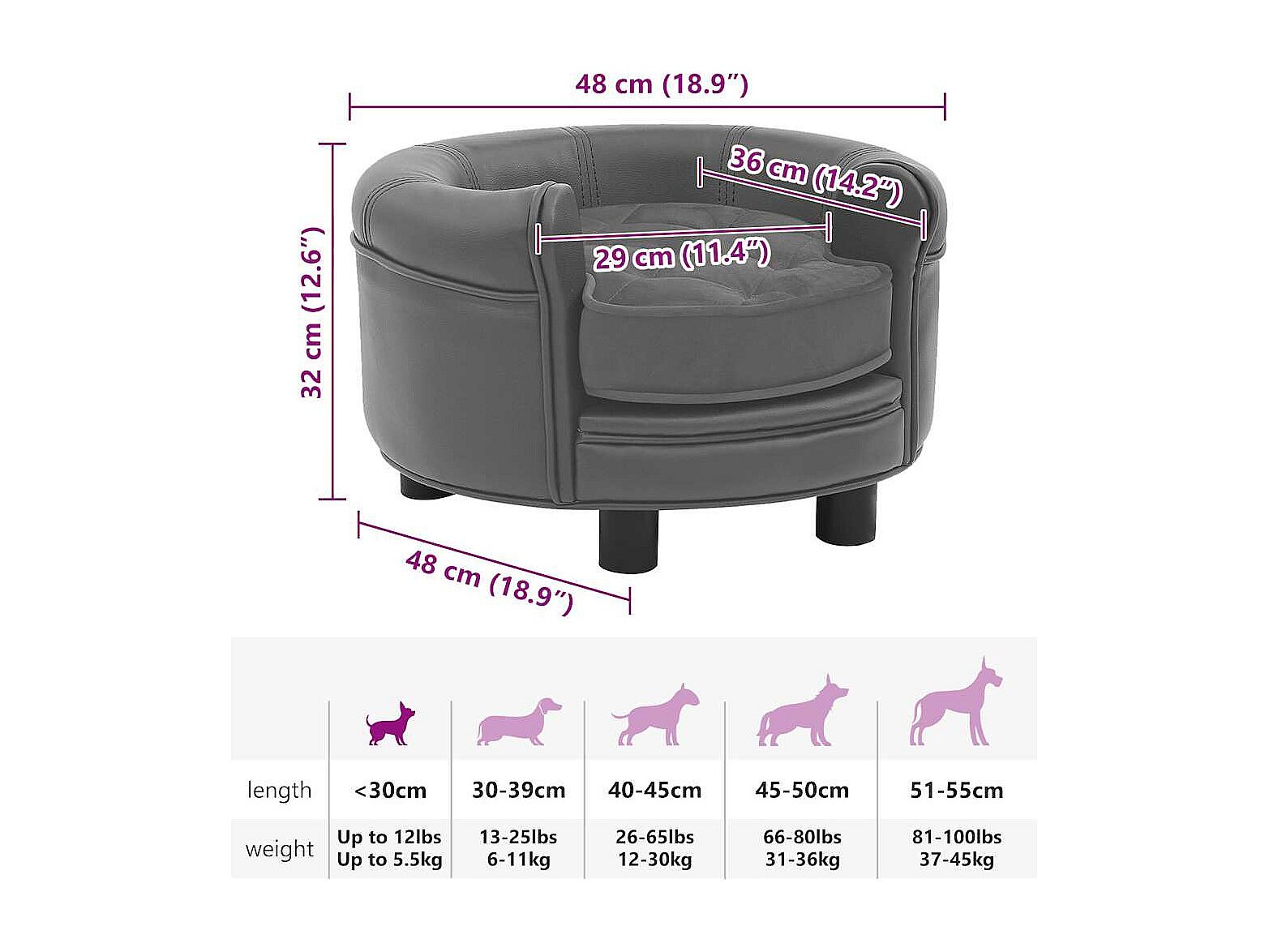 Hondenbank 48x48x32 cm pluche en kunstleer grijs