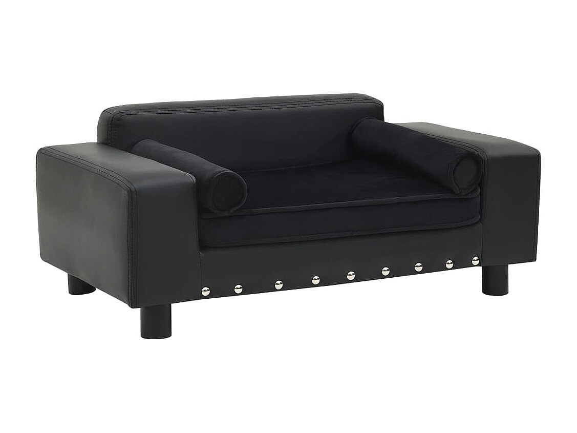 Hondenbank 81x43x31 cm pluche en kunstleer zwart