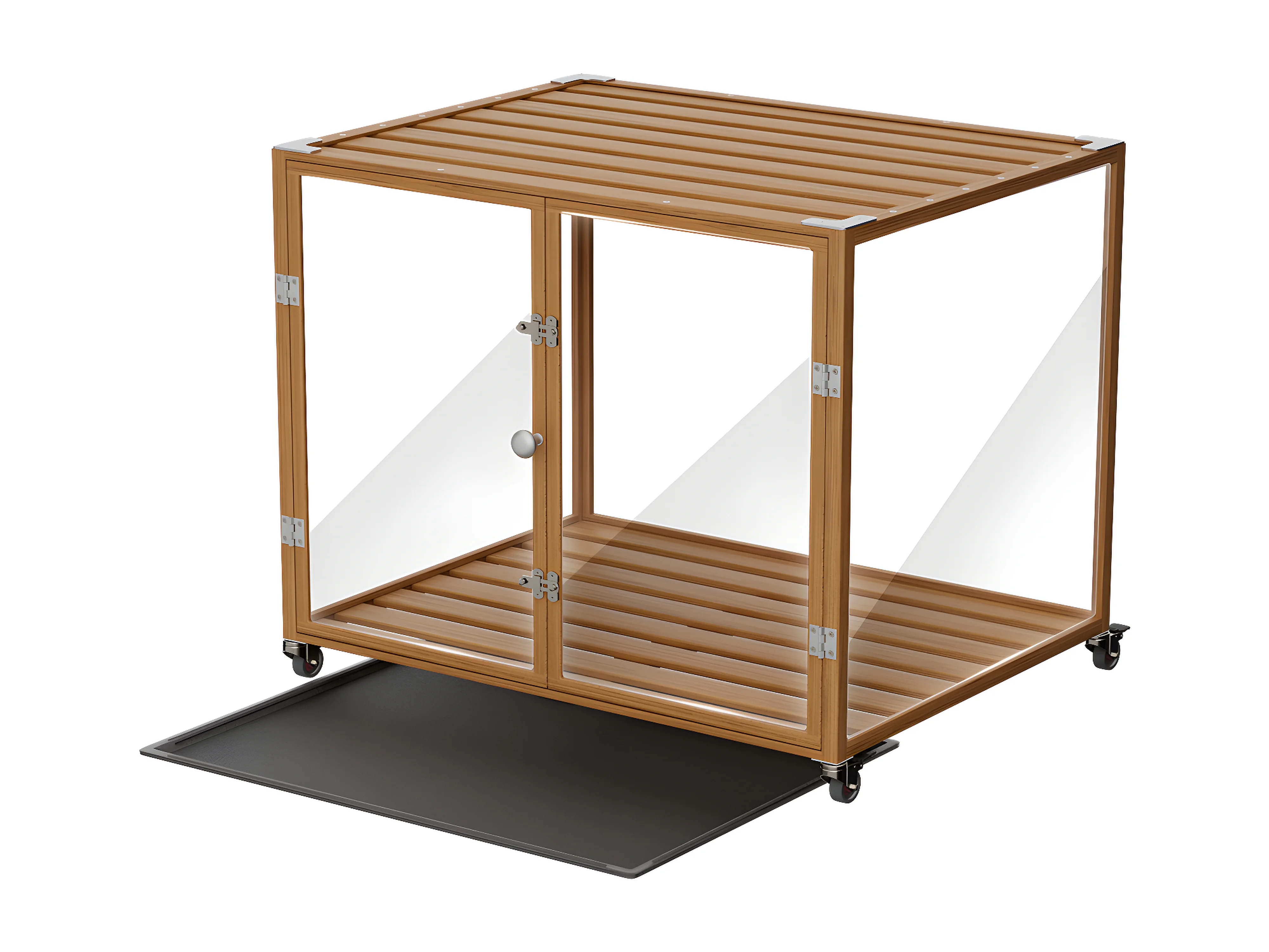 Hondenbench voor binnen met wielen, 90 x 61 x 75,5 cm, grote hondenbench, frame van aluminiumlegering, 90 x 61 x 75,5 cm