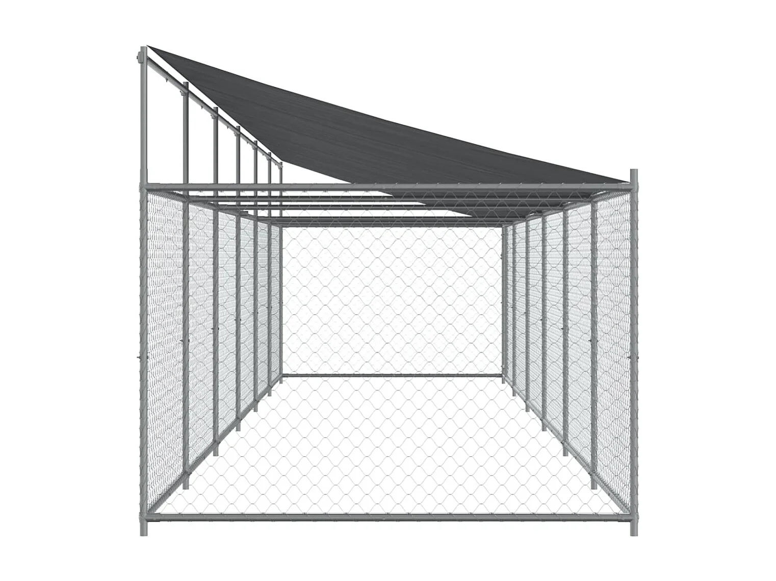 Hondenhok met dak en deur 12x2x2 m gegalvaniseerd staal grijs