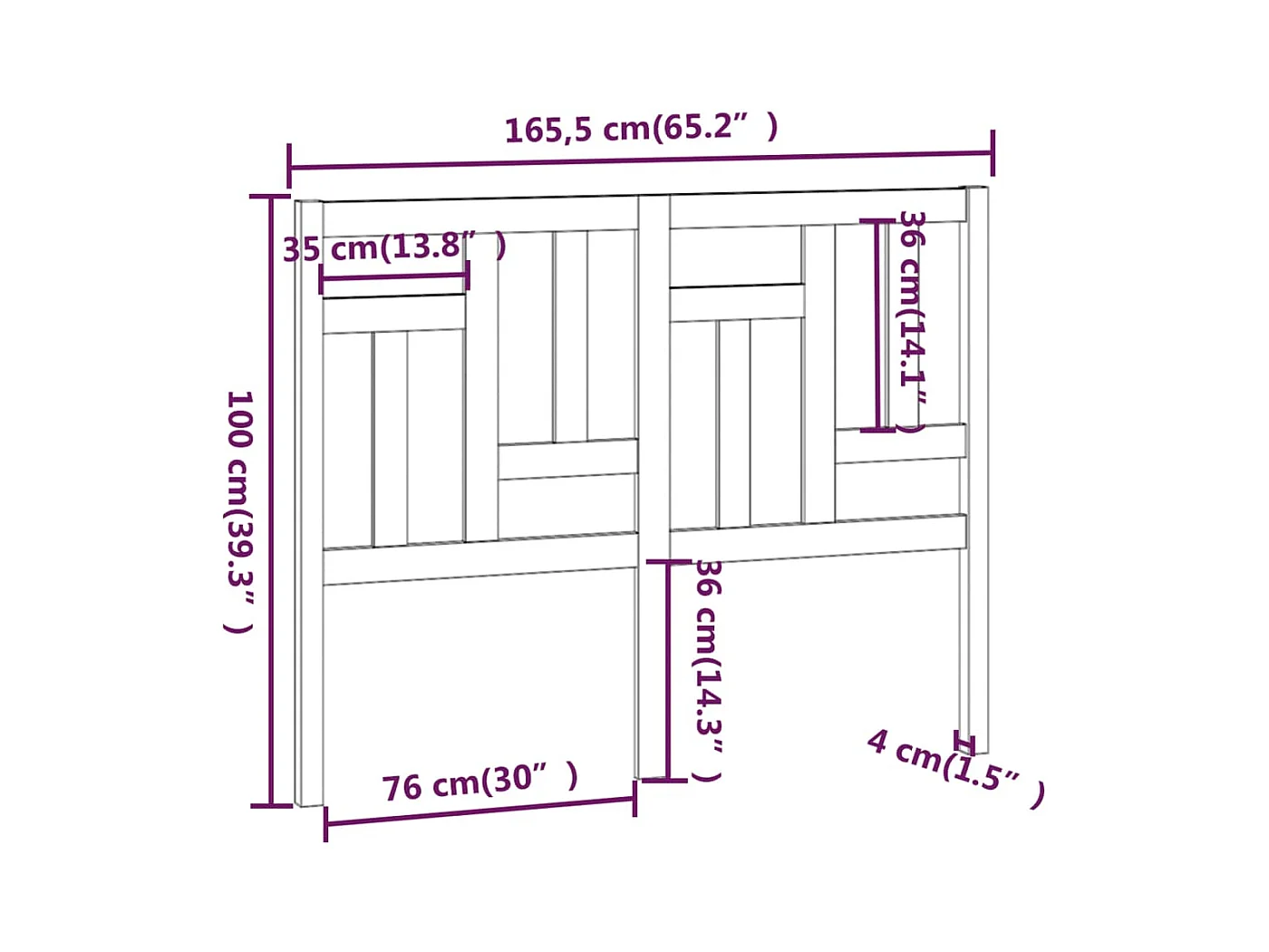 Hoofdbord 165,5x4x100 cm massief grenenhout NL703141