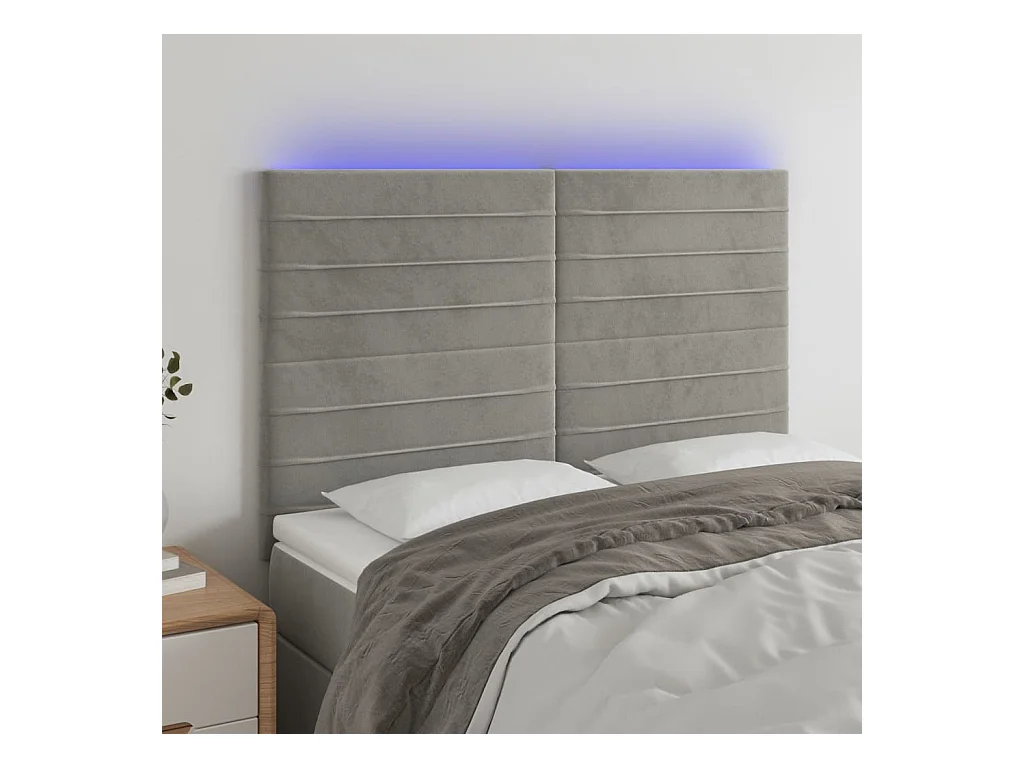 Hoofdbord LED 144x5x78/88 cm fluweel lichtgrijs
