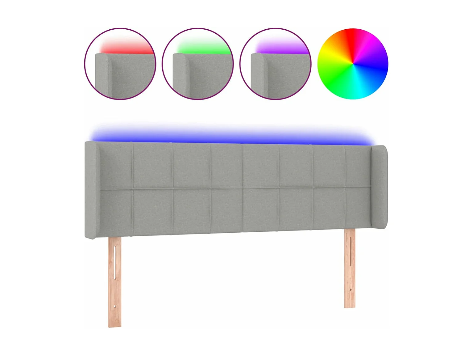 Hoofdbord LED 147x16x78/88 cm stof lichtgrijs