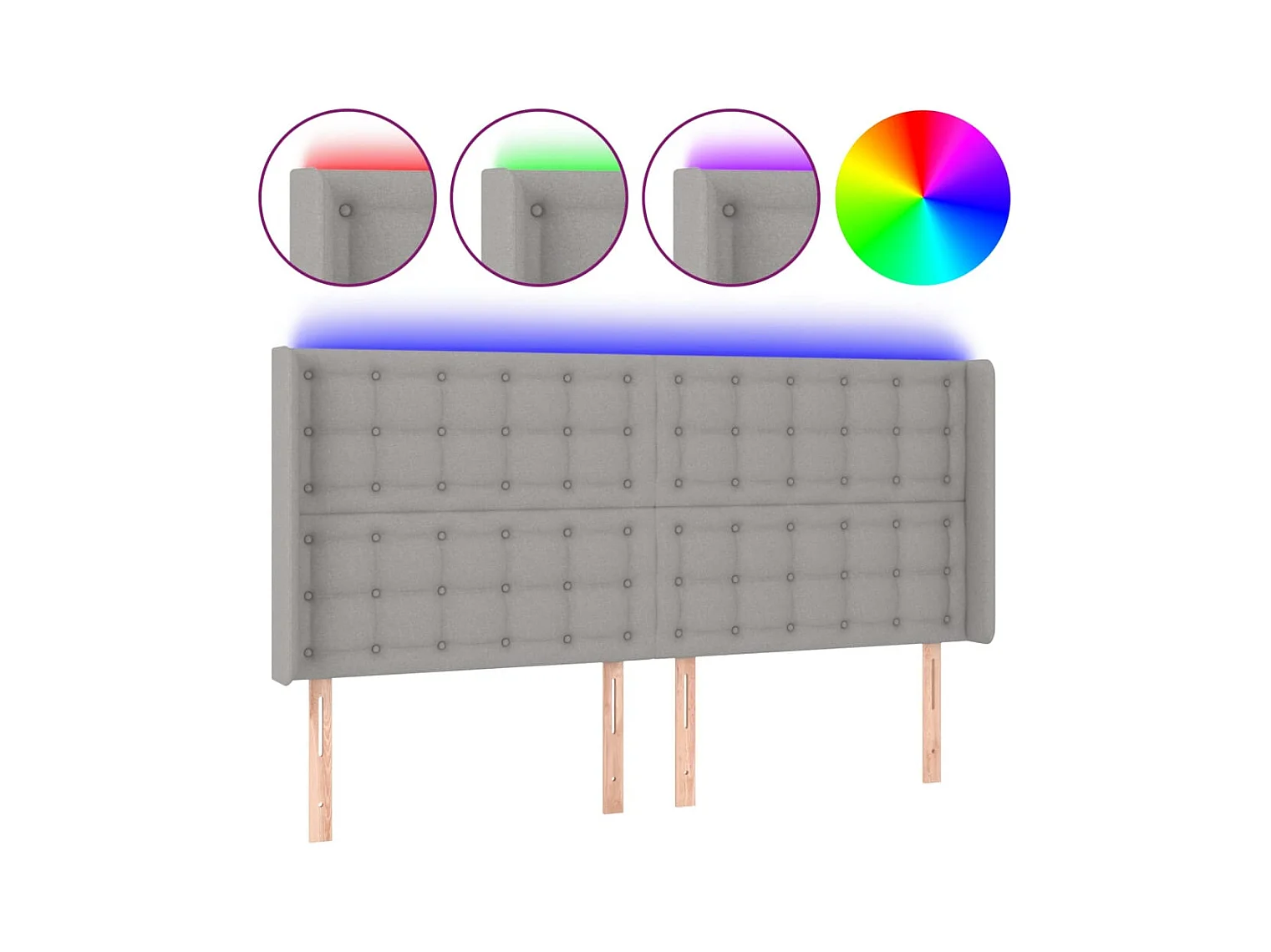 Hoofdbord LED 163x16x118/128 cm stof lichtgrijs