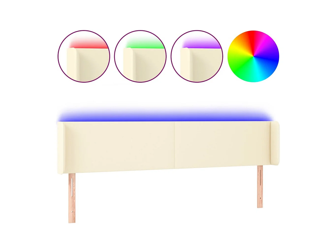 Hoofdbord LED 183x16x118/128 cm kunstleer crèmekleurig