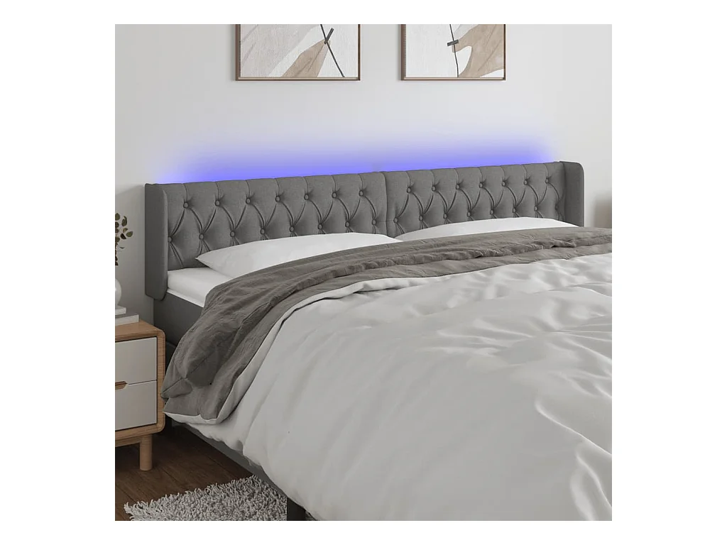 Hoofdbord LED 203x16x78/88 cm stof donkergrijs NL703382