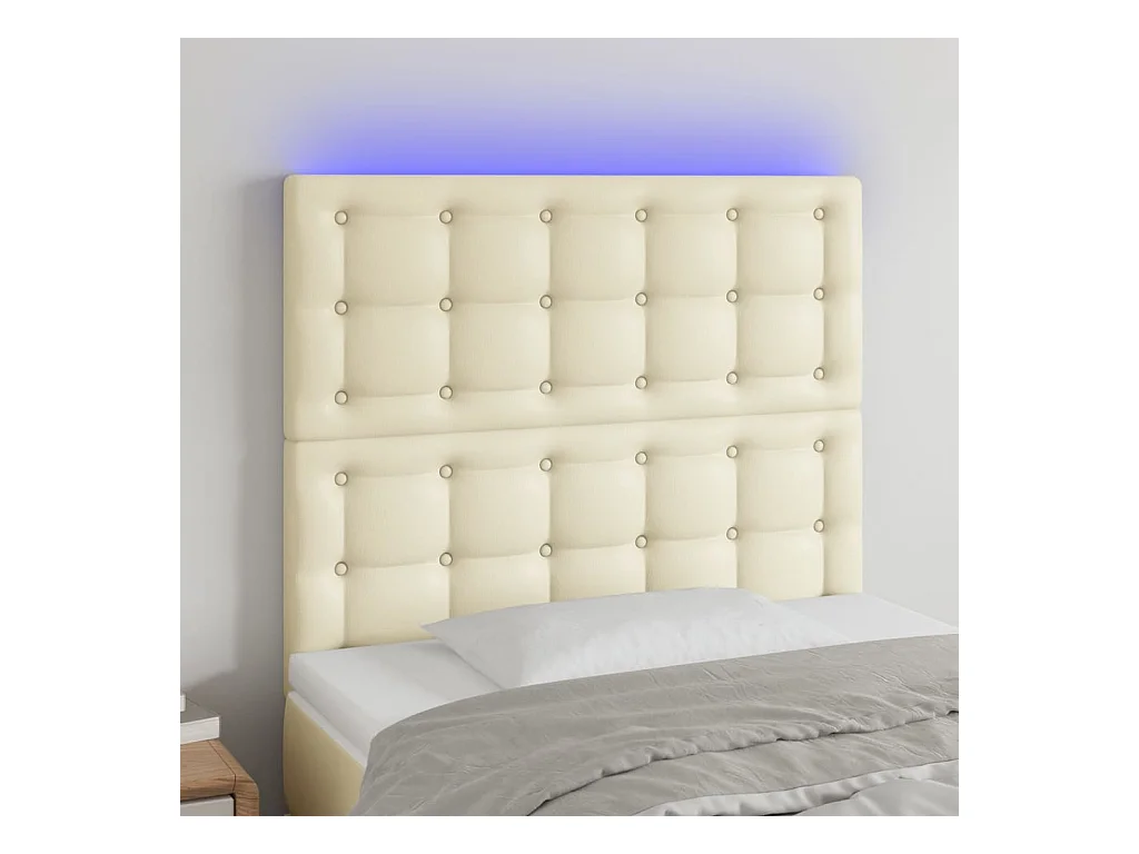 Hoofdbord LED 90x5x78/88 cm kunstleer crèmekleurig