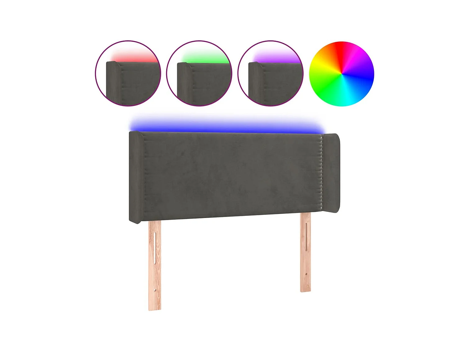 Hoofdbord LED 83x16x118/128 cm fluweel donkergrijs