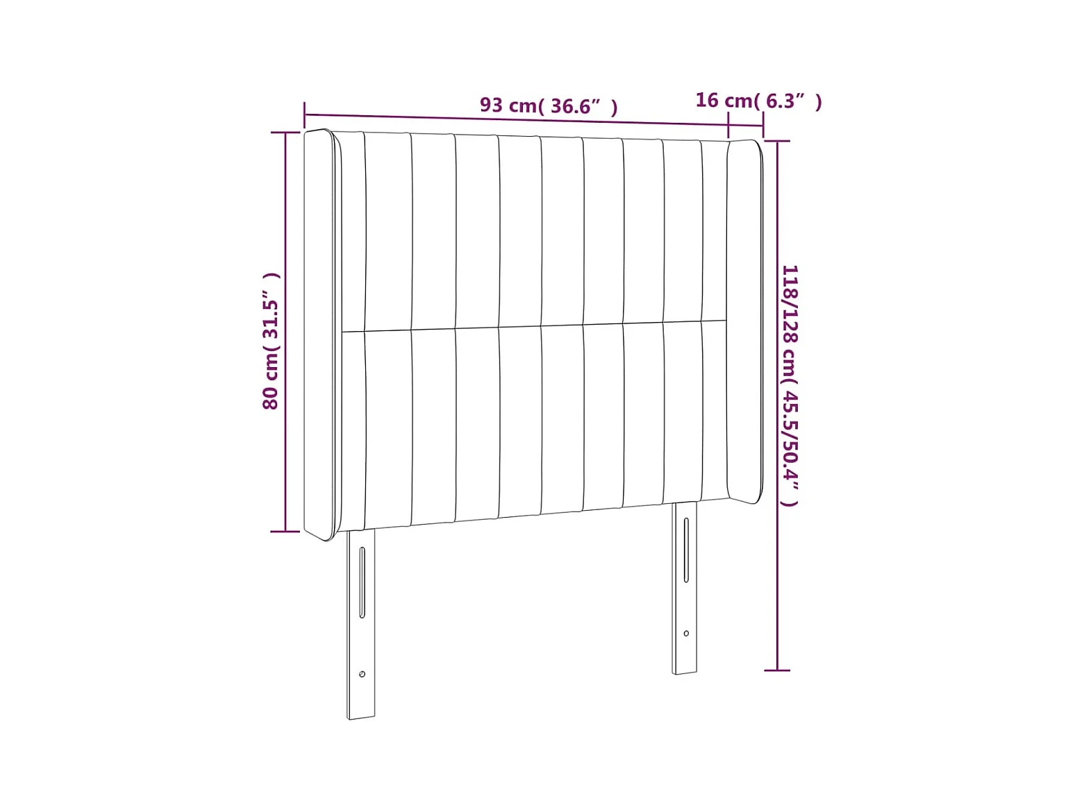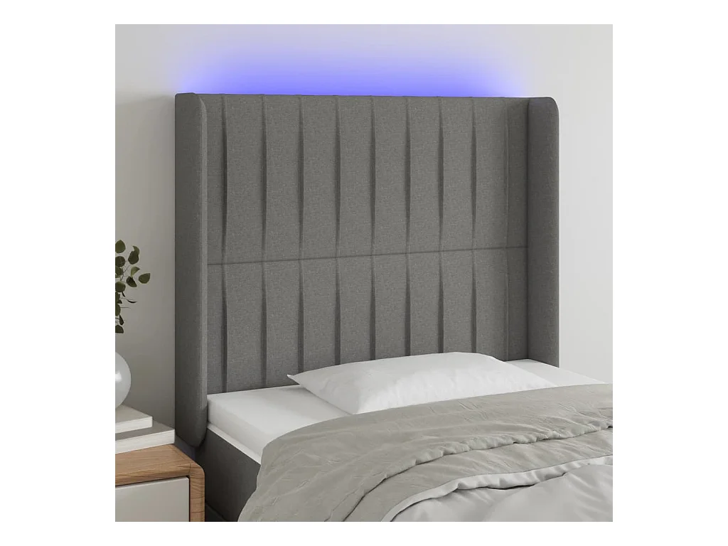 Hoofdbord LED 93x16x118/128 cm stof donkergrijs