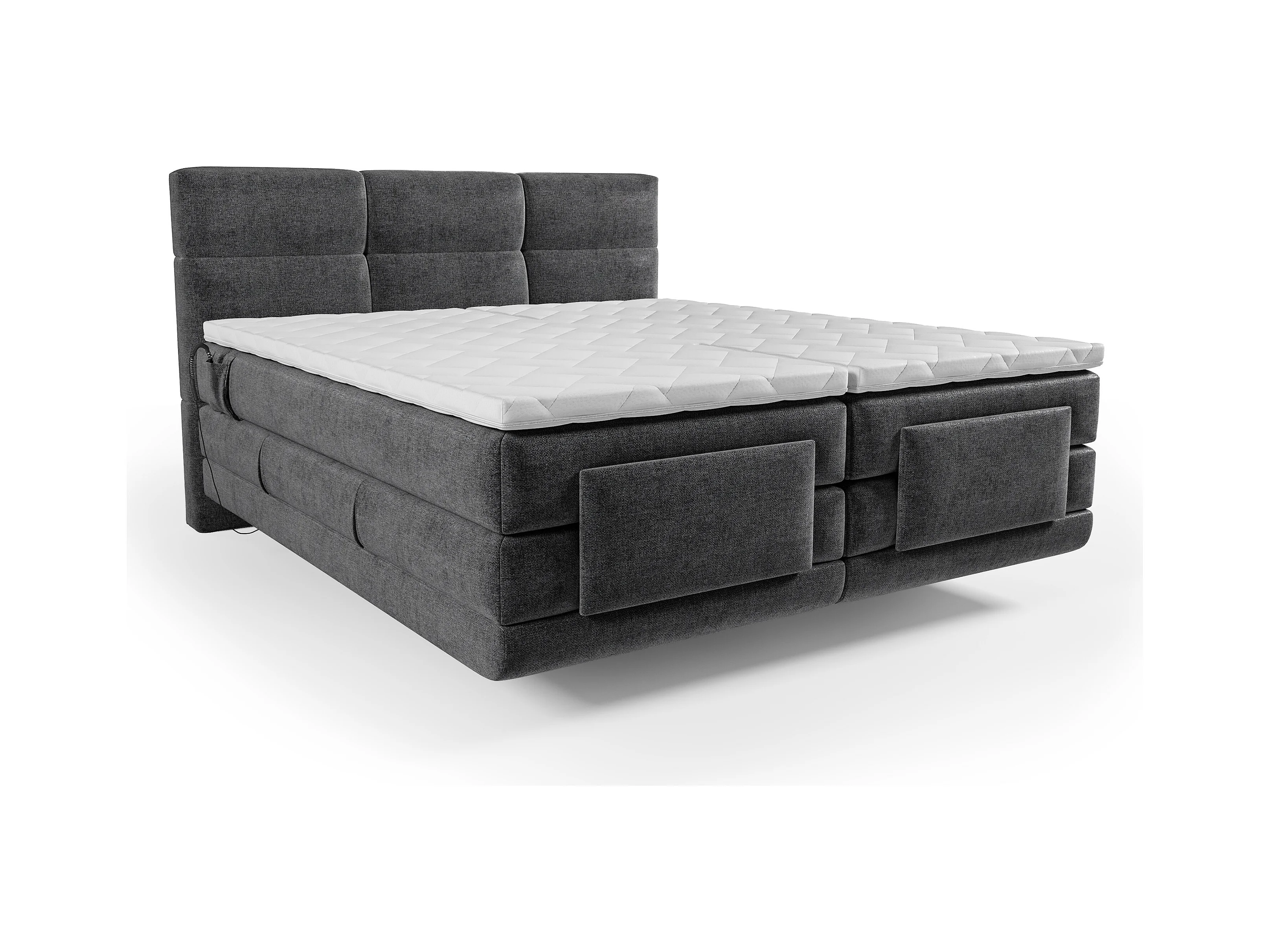 Hoofdbord met boxspring + elektrische lattenbodem + matras + opleg - 2 x 90 x 200 cm - antraciet - LODI by PALACIO